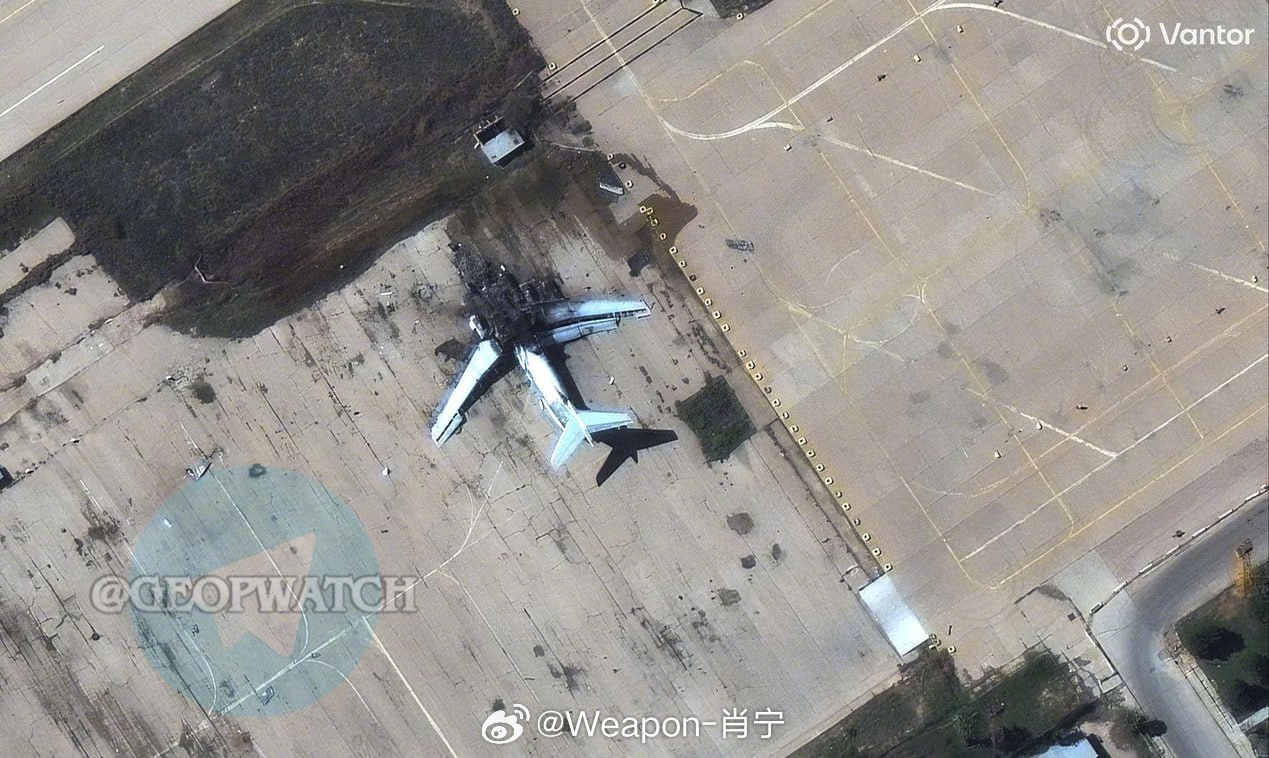 美以伊冲突 卫星图像显示,伊朗设拉子沙希德·达斯特盖布国际机场多架飞机被毁,其中包括1架“伊尔-76”运输机、2架“C-130”运输机和2架“苏-22”战斗机,这些飞机遭到美国空军的攻击。
