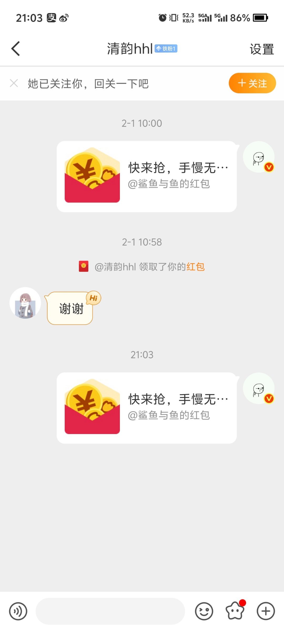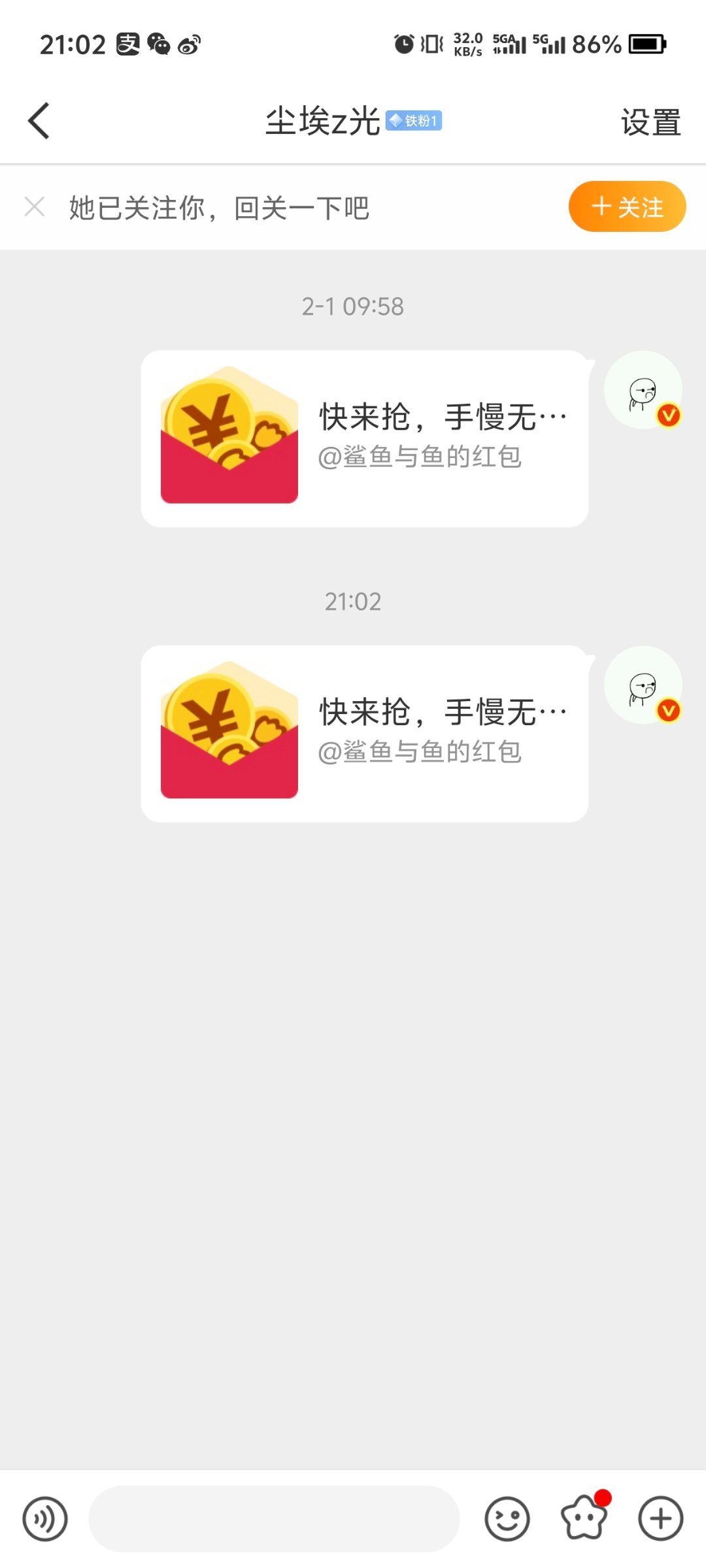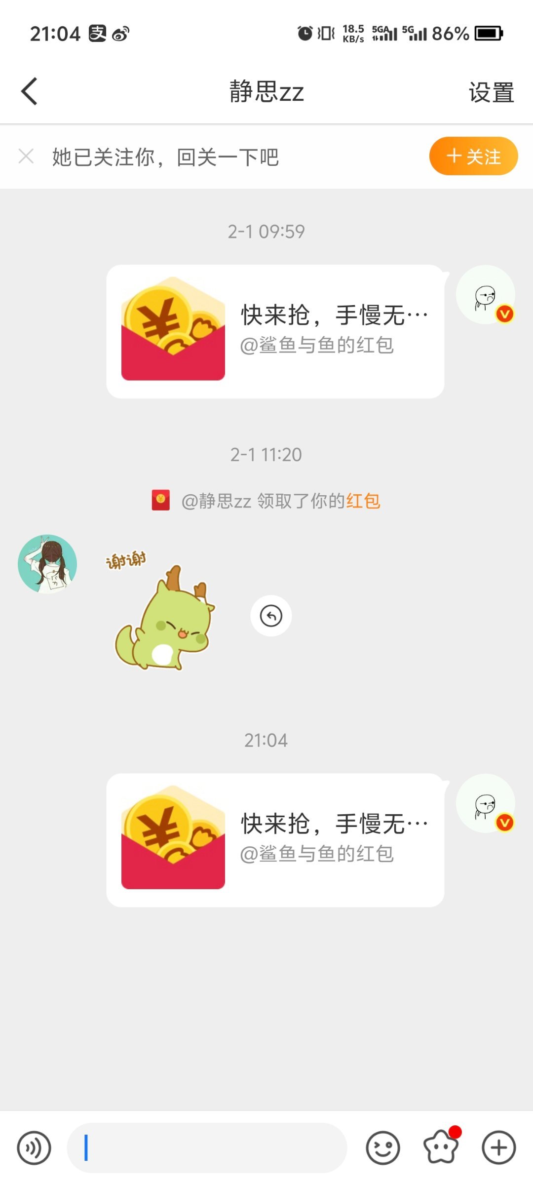 上个月的互动红包已发送