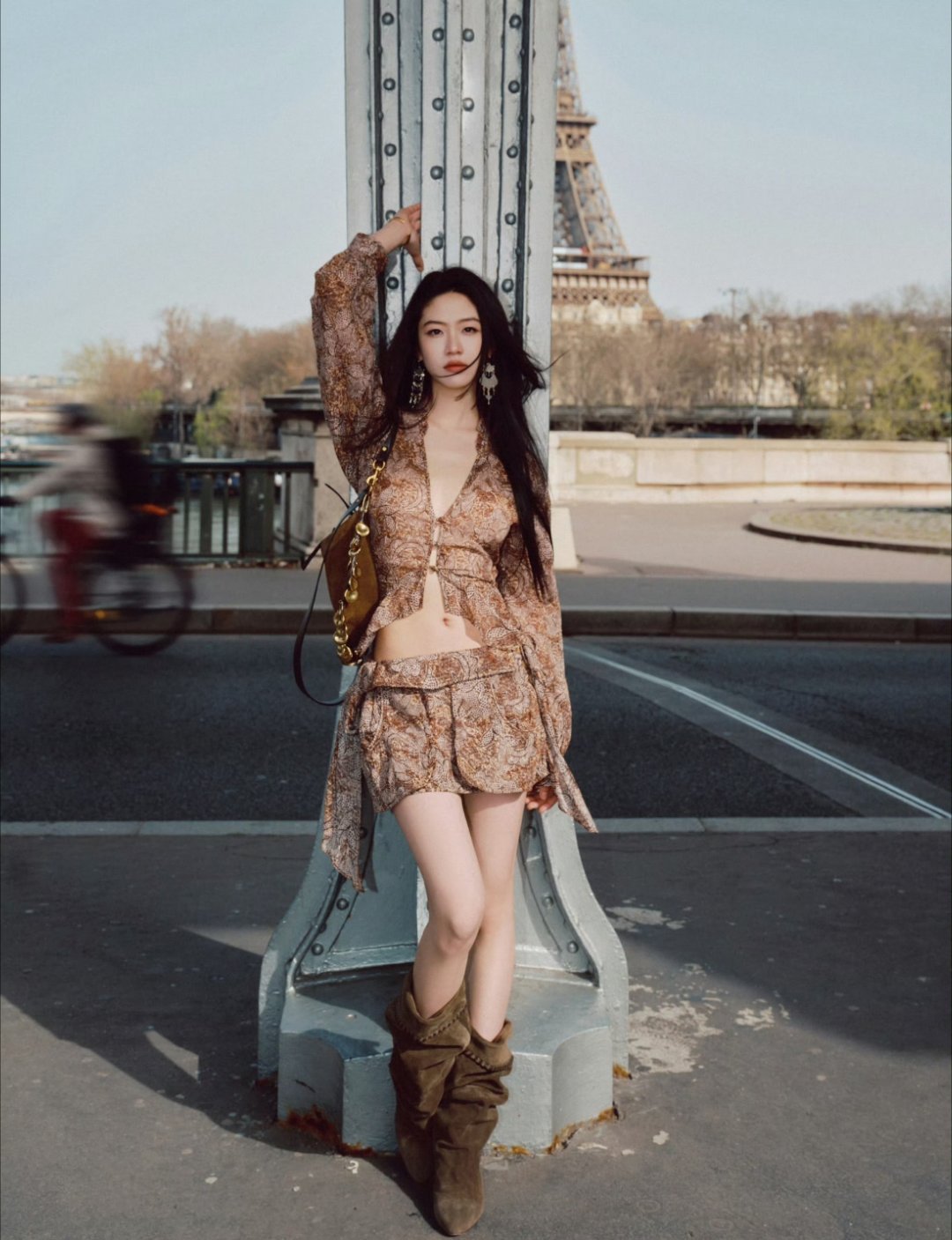 刘亦菲这条裤子挺养生,毕竟降温了肚脐眼必须护住啊