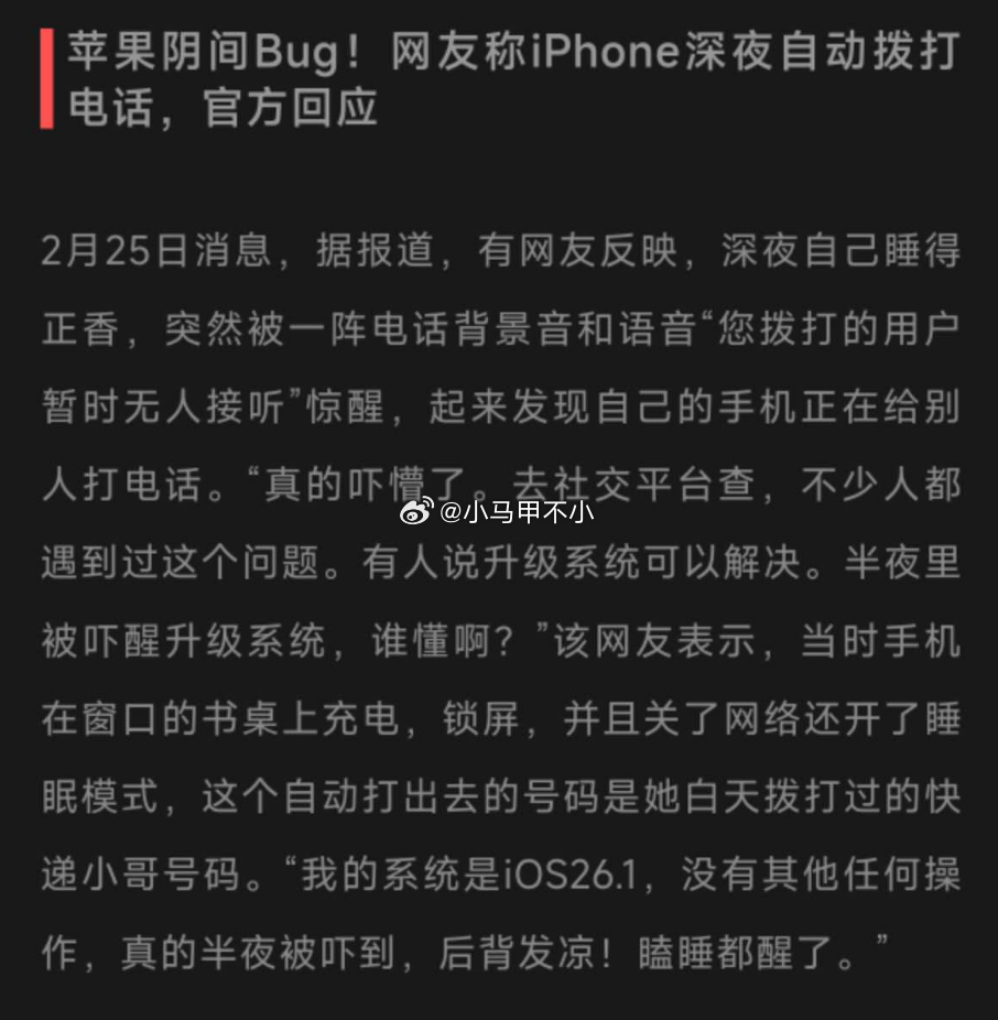 咋回事?网友反应iPhone深夜自动拨打电话