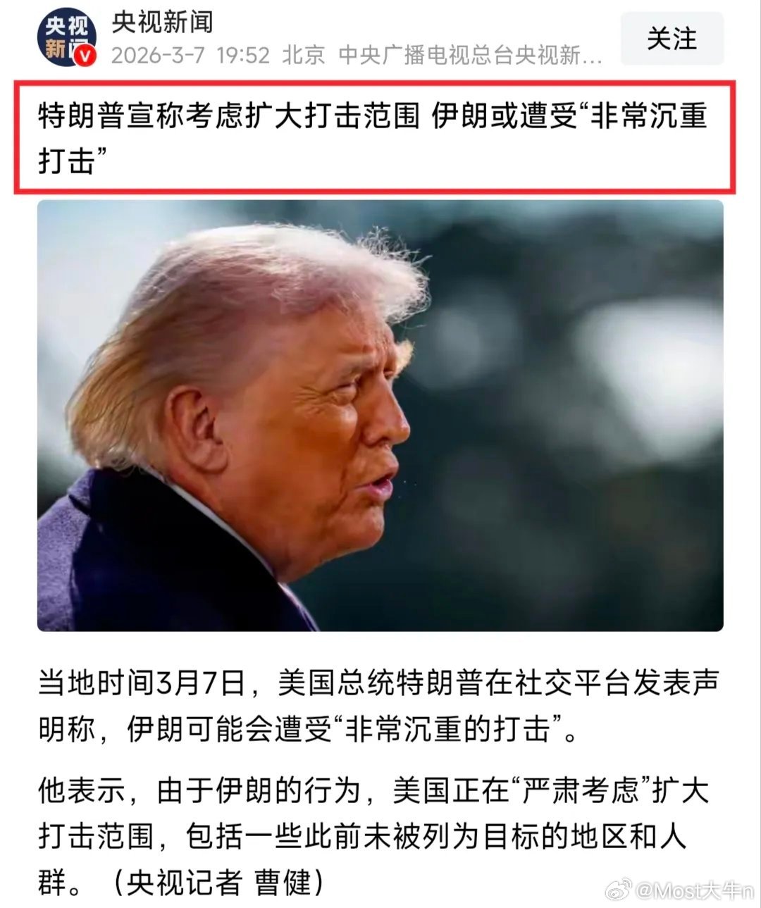 完犊子!懂王继续火上浇油:正在考虑扩大打击范围,包括此前未被列为目标的地区和人群。