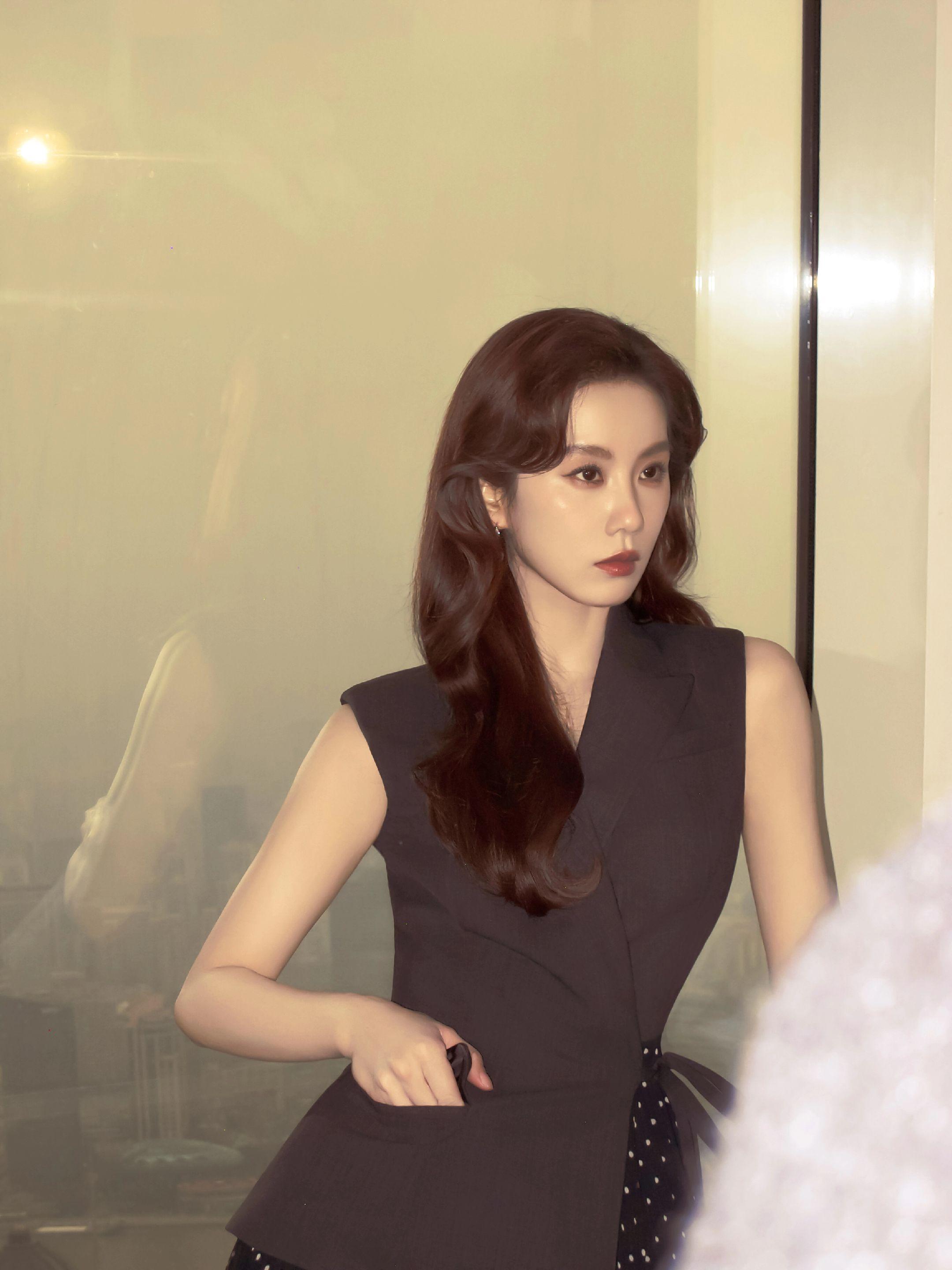 刘亦菲这条裤子挺养生,毕竟降温了肚脐眼必须护住啊