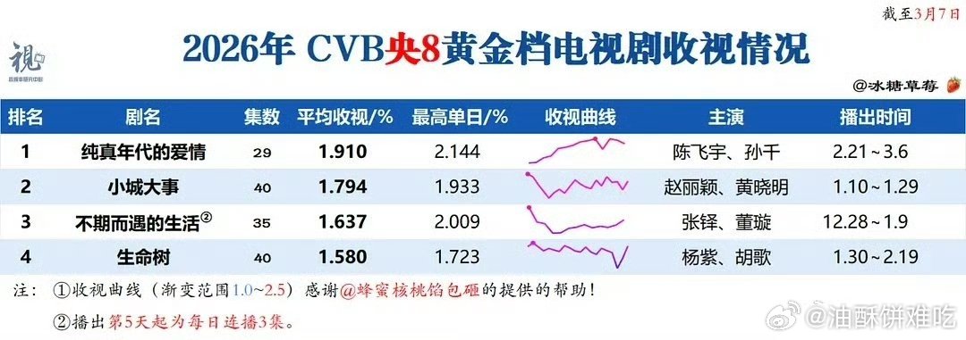 陈飞宇《纯真年代的爱情》cvb1.910%,央八暂年冠!