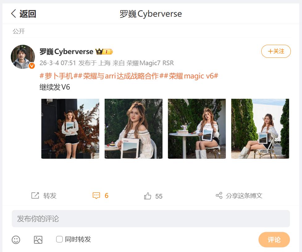 荣耀Magic V6的人像写真能力如何呢?70mm等效焦距还是能够拍出实力大片的,刚刚看到荣耀首席影像工程师罗巍,分享了一组利用这款机型拍摄的人像写真,柔和的自然光环境,氛围清新松弛,人物与环境融合度高,整体构图舒展协调,小伙伴喜不喜欢?畅聊数码新品 数码资讯