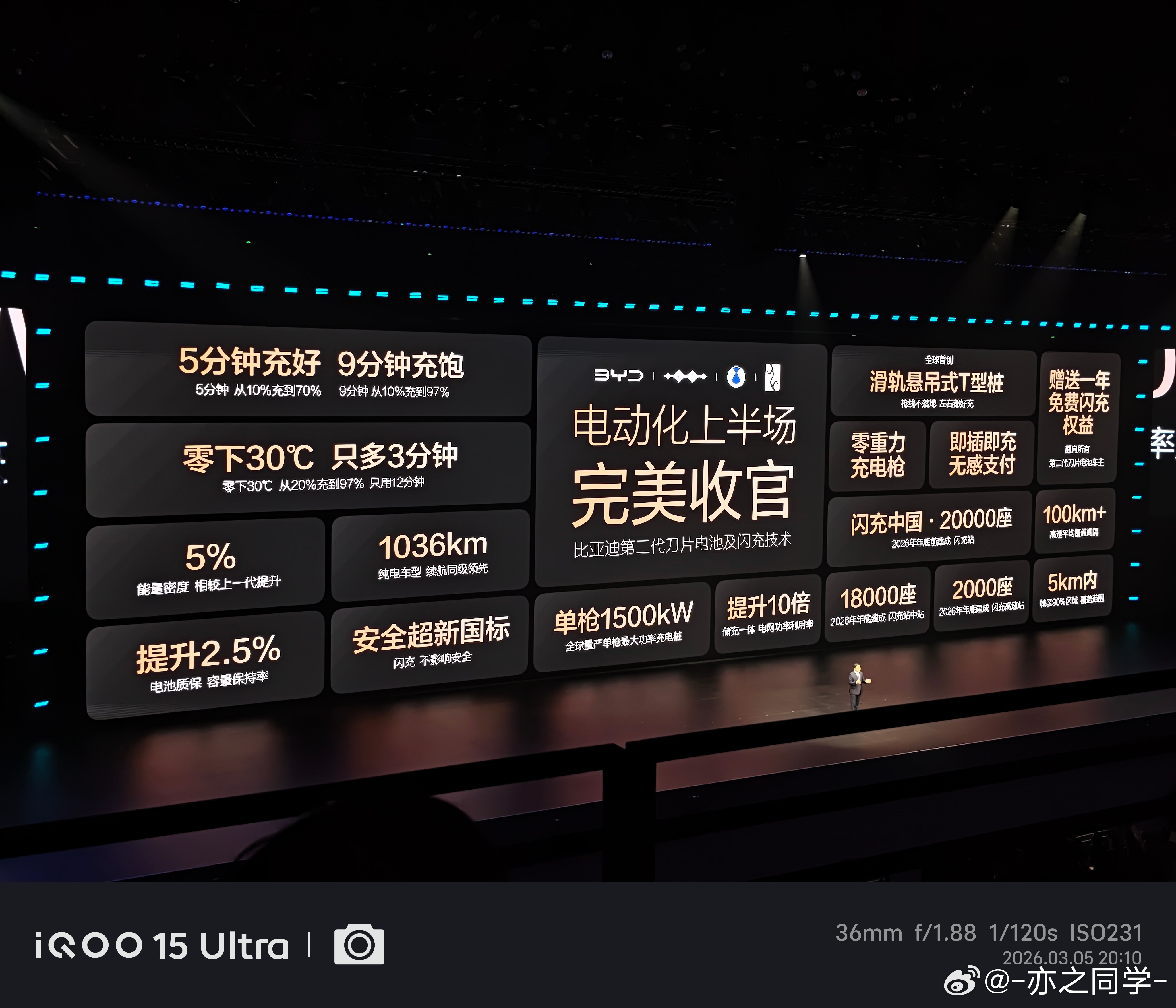 比亚迪用一场发布会宣告:电动化上半场的技术竞赛,今天正式收官。全场发布会,我愿称之为“汽车圈春晚”,内容很多,新车也很多,绝对是颠覆性的,比亚迪闪充封神时刻。第二代刀片电池及闪充技术落地,数据层面,常温下10%-70%充电5分钟、10%-97%仅9分钟,峰值单枪功率1500kW。这不是渐进式优化,是直接把“充电速度”这个最大短板拉到与加油持平。