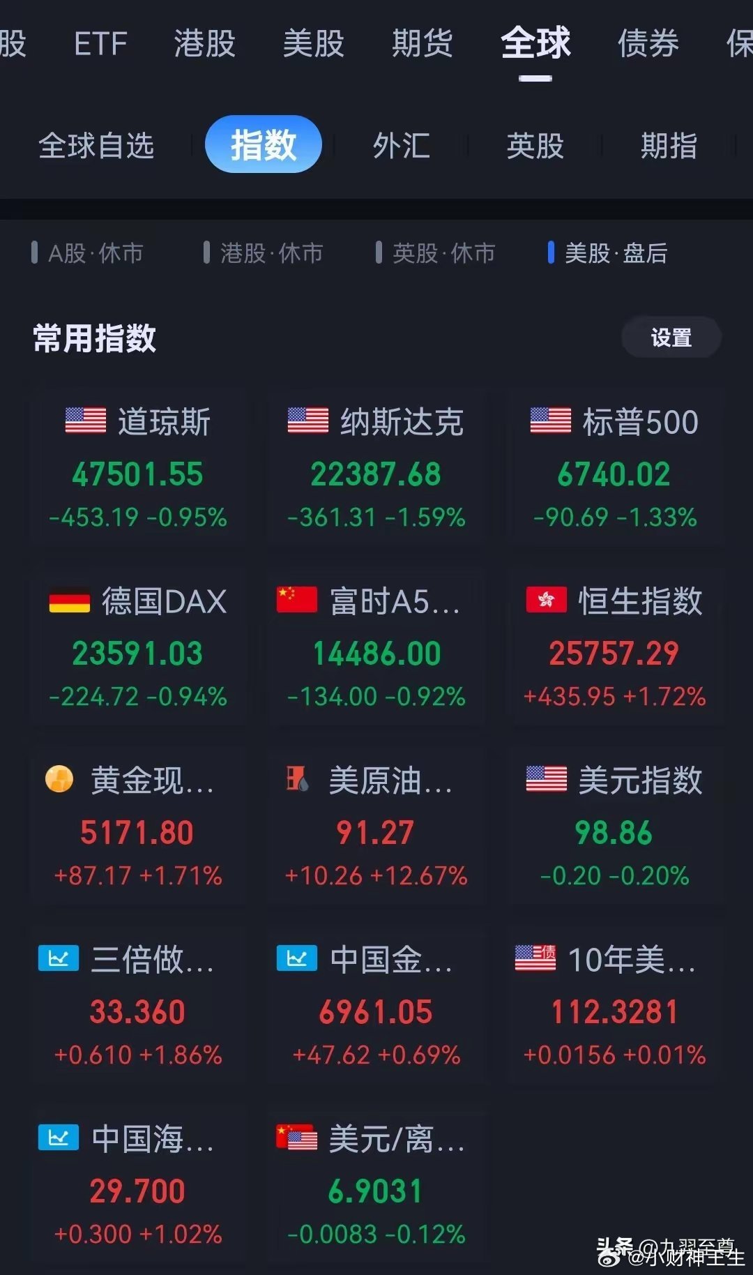 美股大跌;原油暴涨;以金银领衔的矿产资源大涨;中东乱局恐陷入谁也不愿看到的长期态势,令全球经济剧震,令通货膨胀,是降息保经济还是升息保民生?股市将何去何从?A股又如何通过闪展腾挪,走出独立行情?看今晨原油价格直奔100的恐怖态势,再看中东局势的失控,着实令全球金融投资人不安,尤其是A股中只能做多的广大散户!大资金反而能够在剧烈震荡中通过做空做多,获取远超平常的巨幅收益,手段单一的散户就危险了!面对隔夜欧美股市的崩溃,向来“跟跌不跟涨”的A股下周一难免受挫。虽然说我们有护盘基金,有勉强通航霍尔木兹海峡的特殊待遇,有稳定的金融秩序,但也无法在全球资源格局巨变中独善其身。作为只能做多的“小散户”,我们只能暂避科技共振的冲击,或空仓观望,或切入资源板块。就目前来看,金属本身的战争消耗,和各国军工的刺激性扩产,以及对冲货币贬值的属性,全面涨价是难免的,叠加大部分金属股尚处估计低位,机会还是比较确定的。镍钴钨铜钼锂锡铟钽,以及磷硫砷等,都是值得我们重点切换的标的。