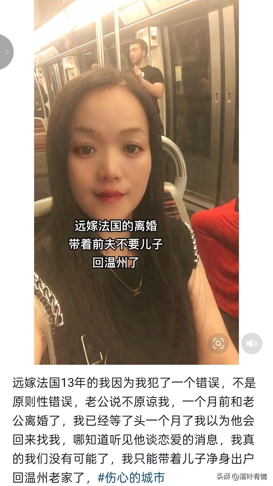 温州励志女不顾家人反对, 孑然一身远嫁法国, 在法国和老公生活了13年, 没有想到几个月前和老公吵了一架, 结果老公就要和她离婚, 她以为老公和她开玩笑, 结果老公来真的, 不敢相信她在法国待了一个月, 以为老公会来劝他回去, 结果老公一个月就找到了新欢, 这让他非常的伤心, 就这样直接和老公离了婚, 儿子也没有争夺过来, 孑然一身,又回到了国内, 想着不行再找个老实人接盘, 毕竟国内男多女少, 能娶个媳妇儿就烧高香了, 可没有想到回到国内, 根本找不到合适的, 当大家听说她的老公是法国, 几乎所有的男的找各种理由拒绝她, 本来她还在炫耀自己的国外经历, 以 为这是一个相亲加分项, 结果稍微有钱的老板直接拒绝了她, 这让她百思不得其解, 毕竟会法语的她可是能帮助温州老板解决外贸问题的,像这样能干的女人不多了,但是老板却很介意她, 想着找个普通的人嫁了, 结果人家都嫌弃她年龄大, 没办法她至今还单身, 明明自己这么优秀,却嫁不出去, 大家觉得原因出在哪? 远嫁国外生活 女生海外 远嫁法国