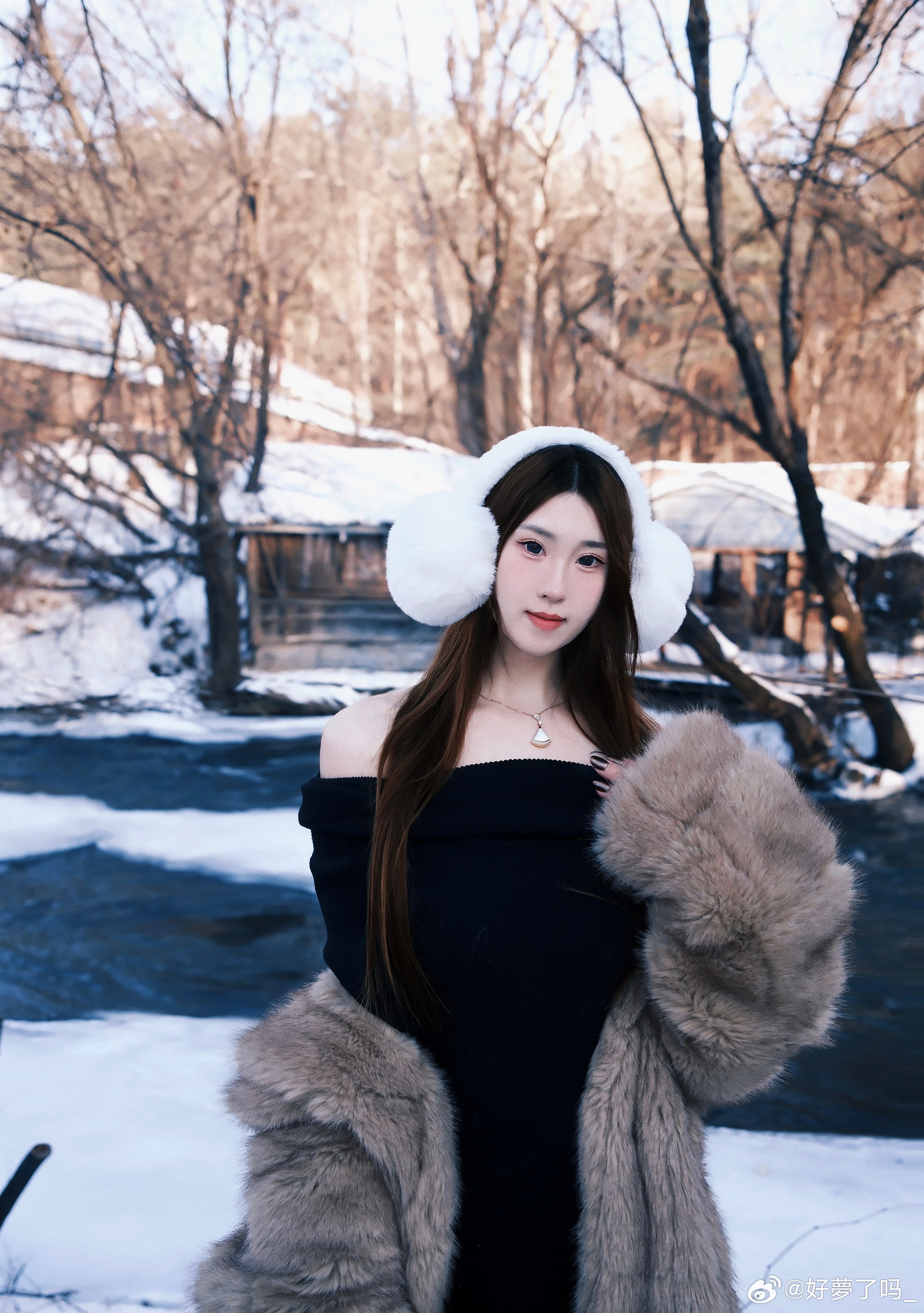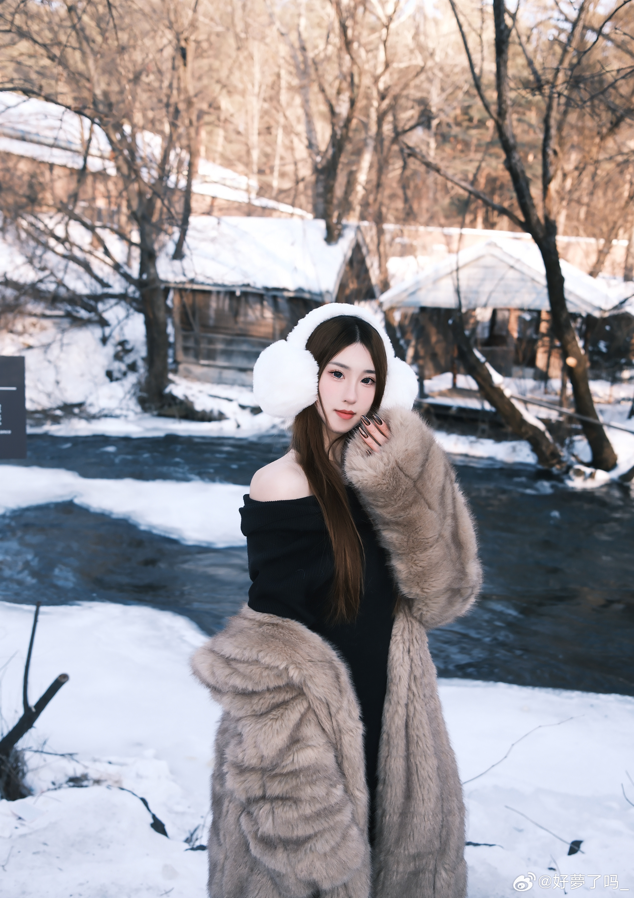 乡野凝霜色,芳姿自出尘。长靴踏残雪,眉眼尽温醇。