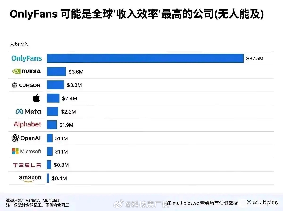 全球收入效率最高的公司,第一“遥遥领先”于英伟达,最先进打不过最古老的