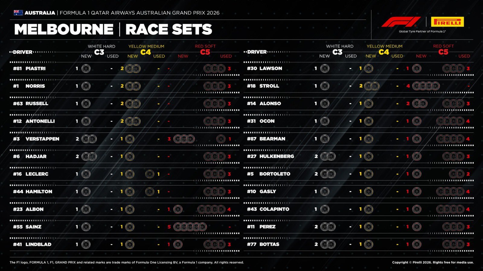 F1澳大利亚大奖赛车手轮胎以及预计策略