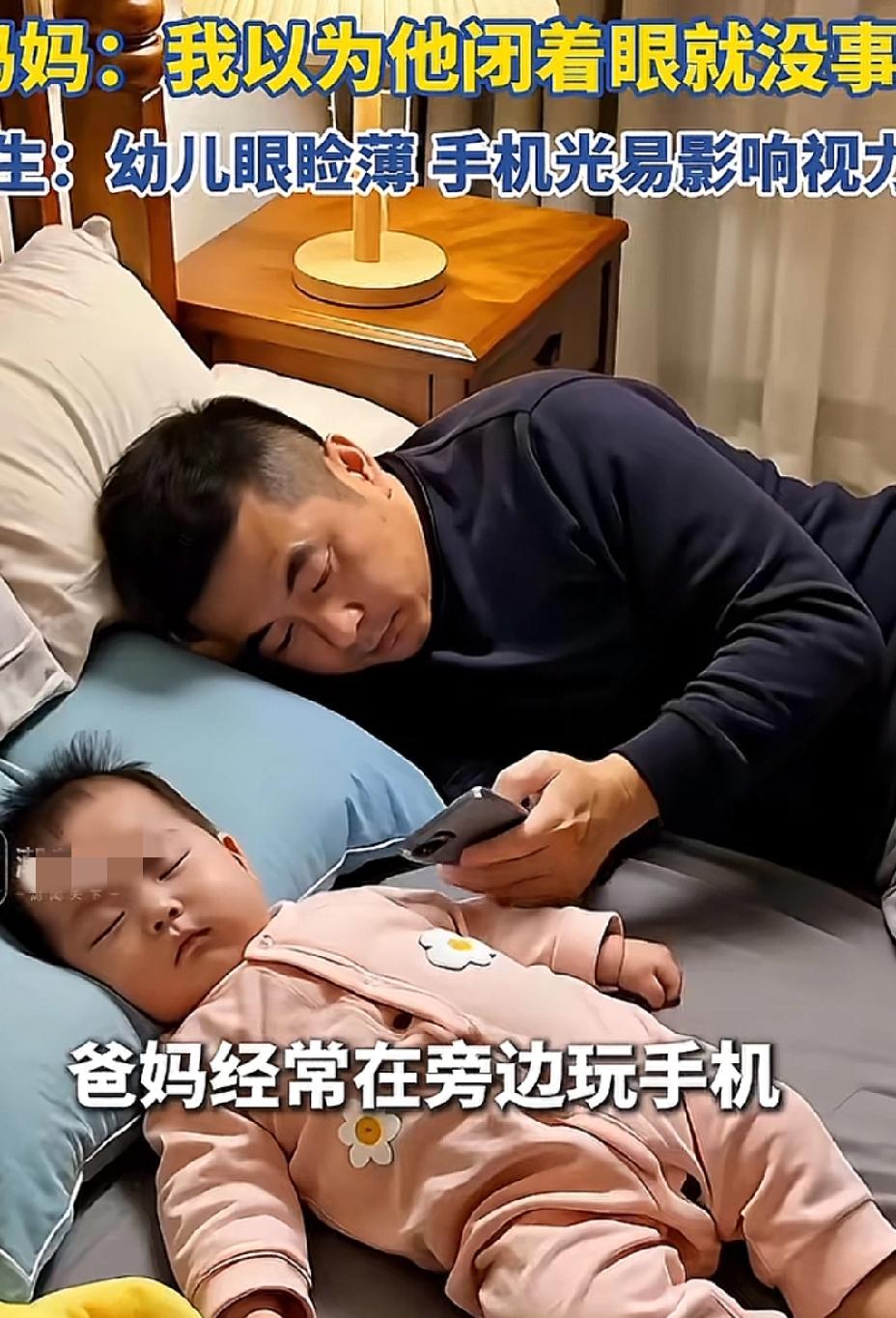 六个月宝宝检出散光,原因竟是因为这个… 近日安徽一对夫妻带六个月大的宝宝去医院体检,竟然查出孩子有散光,而孩子父母都没有遗传性散光。 经过一番检查确认,孩子的散光竟然是因为孩子爸妈经常在孩子身边玩手机导致的。 不要以为孩子在身边闭着眼睛睡觉就没事了,手机的强光会透过孩子的眼皮刺激视网膜,从而影响视力。 医生也建议,孩子的眼睑薄,手机光容易影响视力,家长最好不要在孩子身边玩手机。