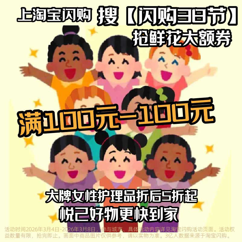38节上淘宝闪购买花爱老己送花不需要理由,如果一定要有,那就是“因为是你”,上淘宝闪购搜【闪购38节】,抢100-100元鲜花大额券,大牌女性护理品折后5折起,悦己好物更快到家,愿你在春天里绽放,活成春天的模样。淘宝闪购38节