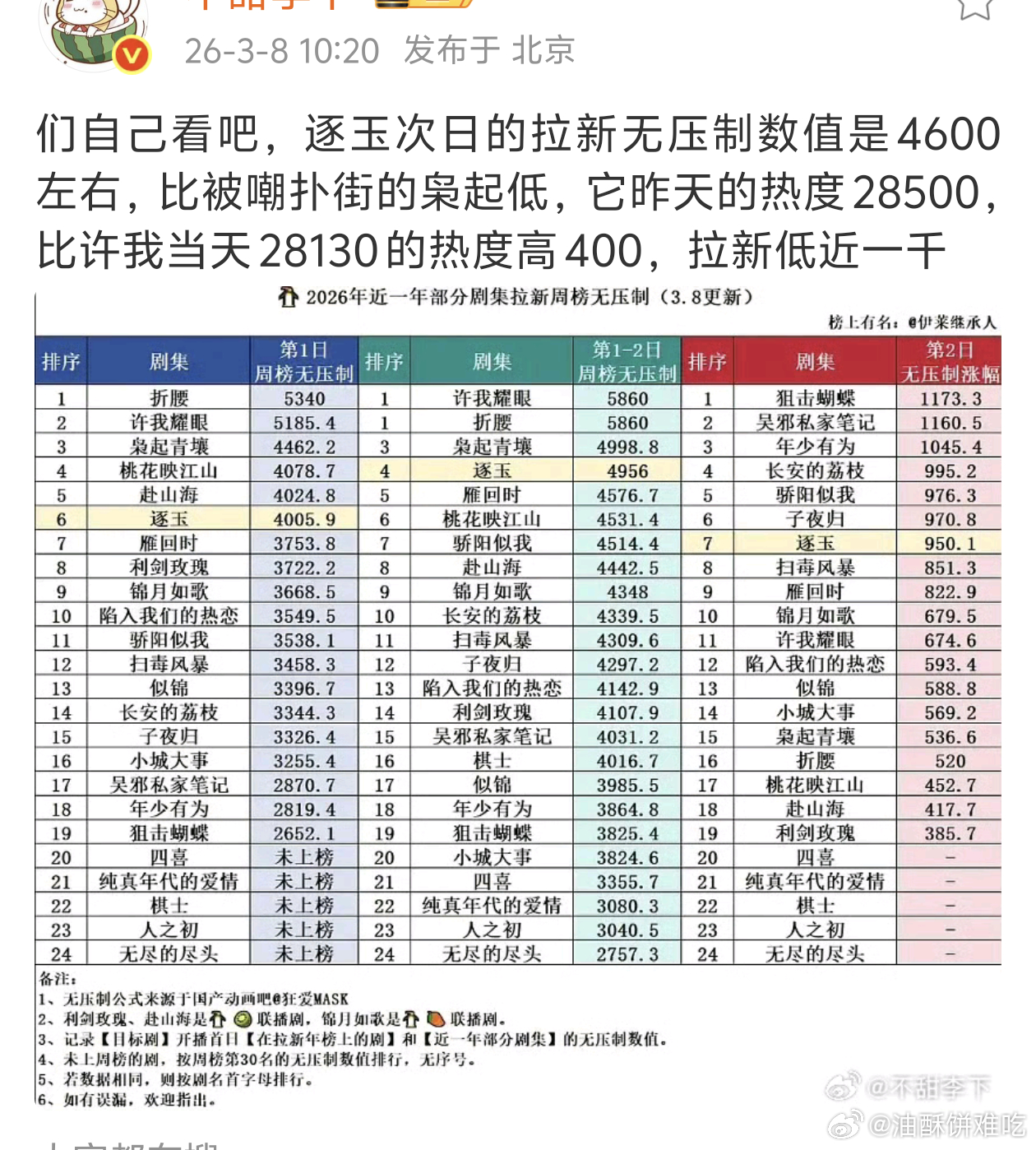 都在拿连播剧说事,但它腾讯站内热度28500啊,这是腾讯单平台的数据,拉新不行,下载量低那是什么支撑到28500的?