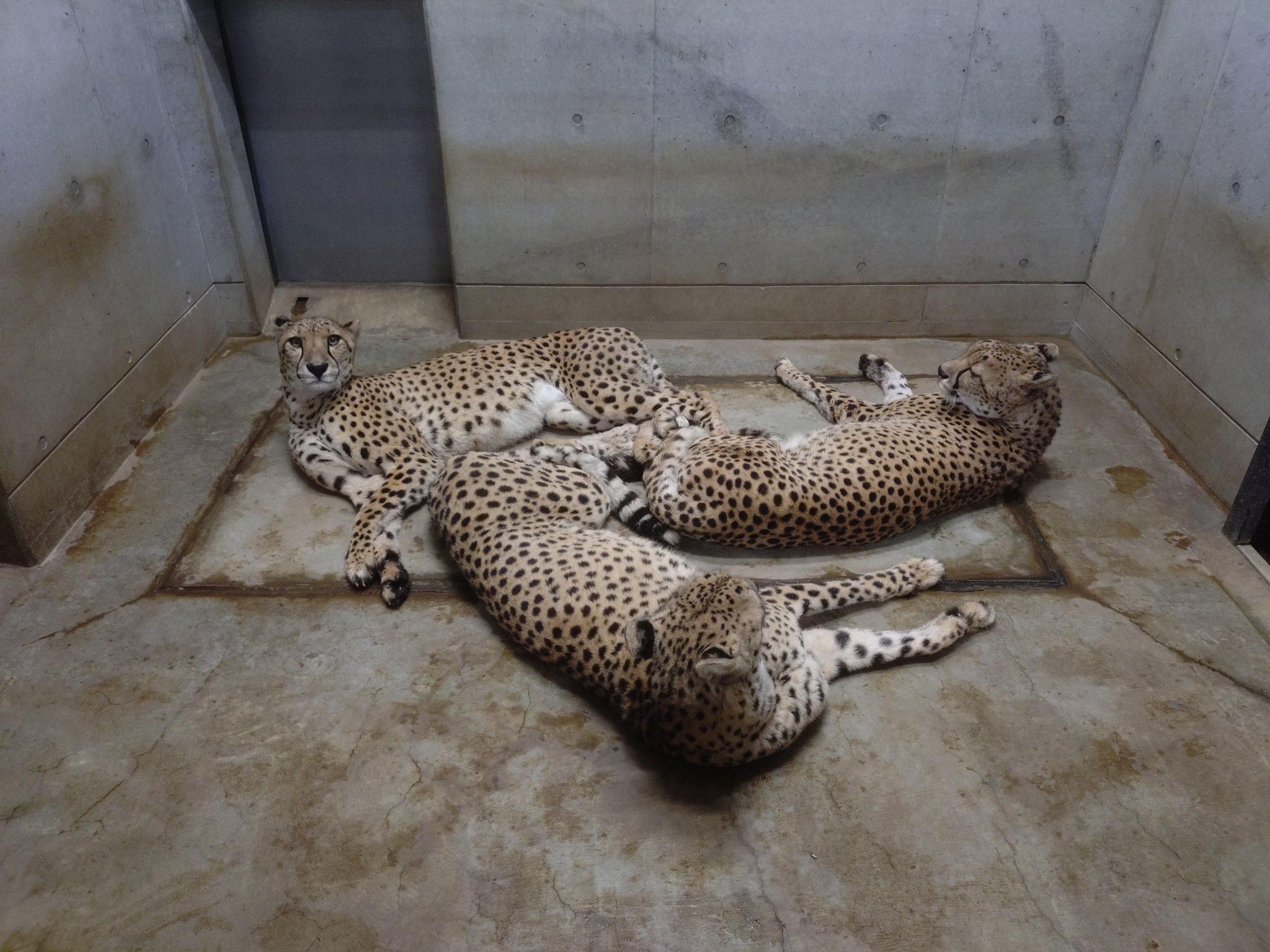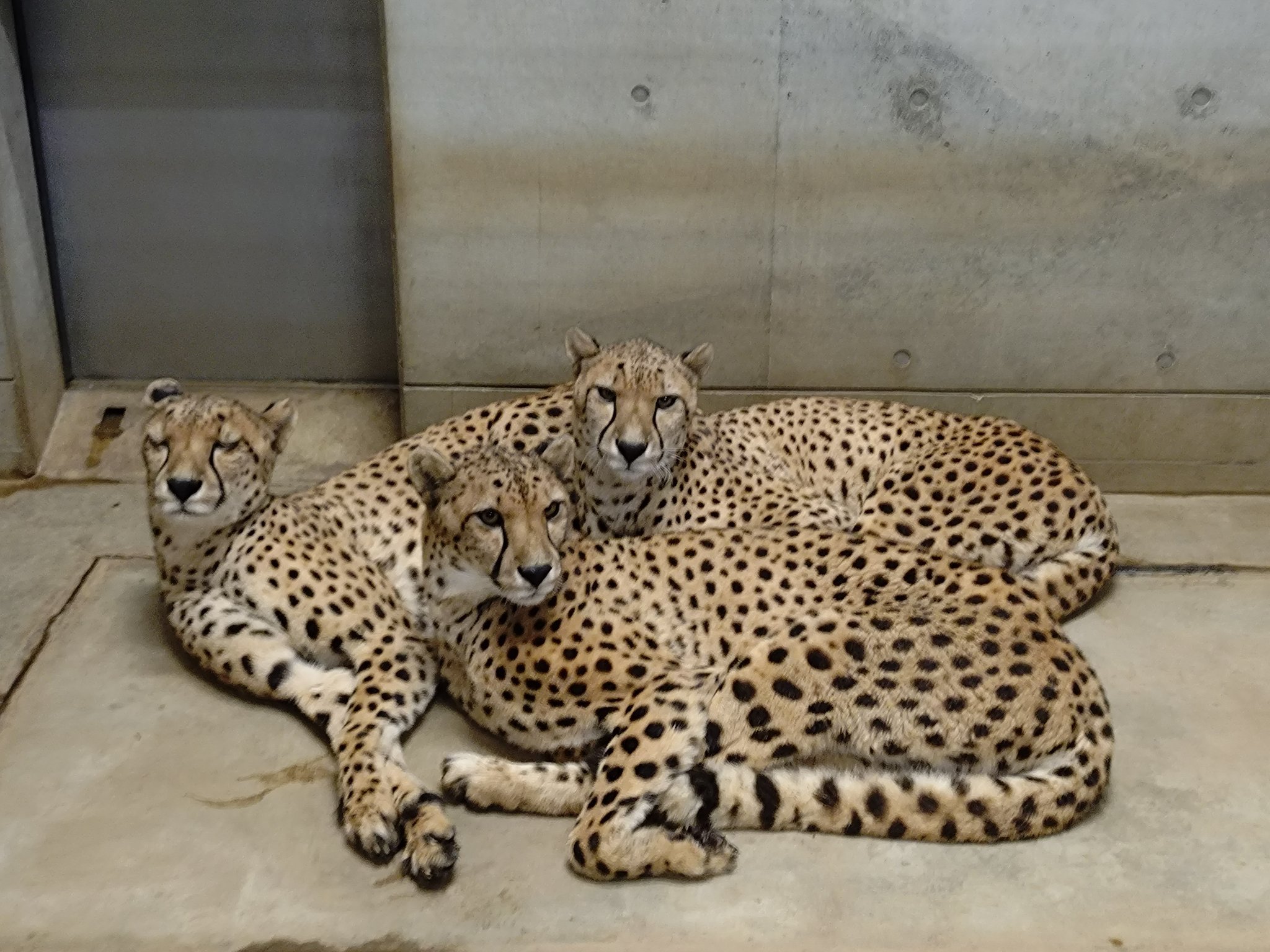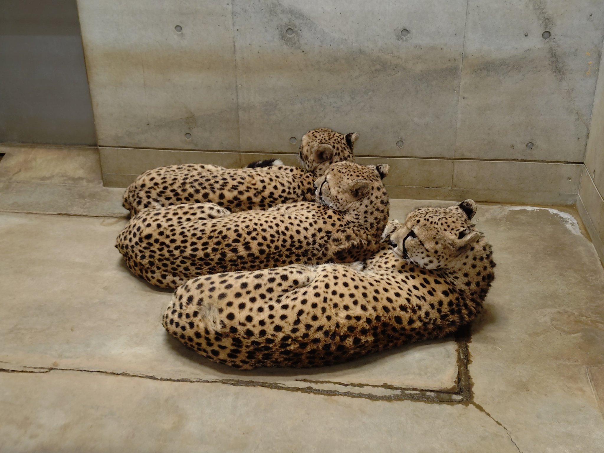 千叶市动物园的三小只猎豹长大啦~晚上在内室休息的时候,感情好到总是挤作一团~好吧