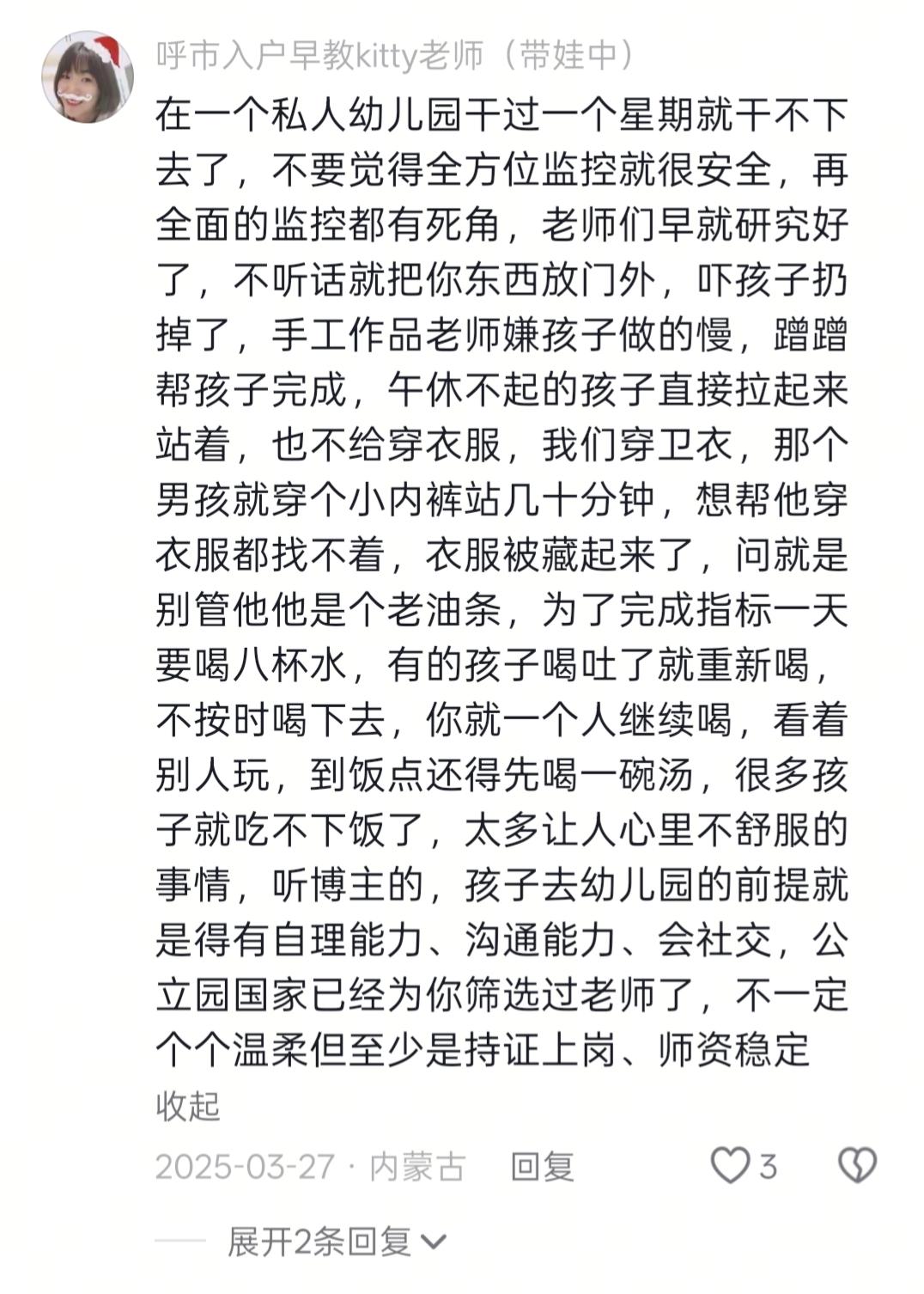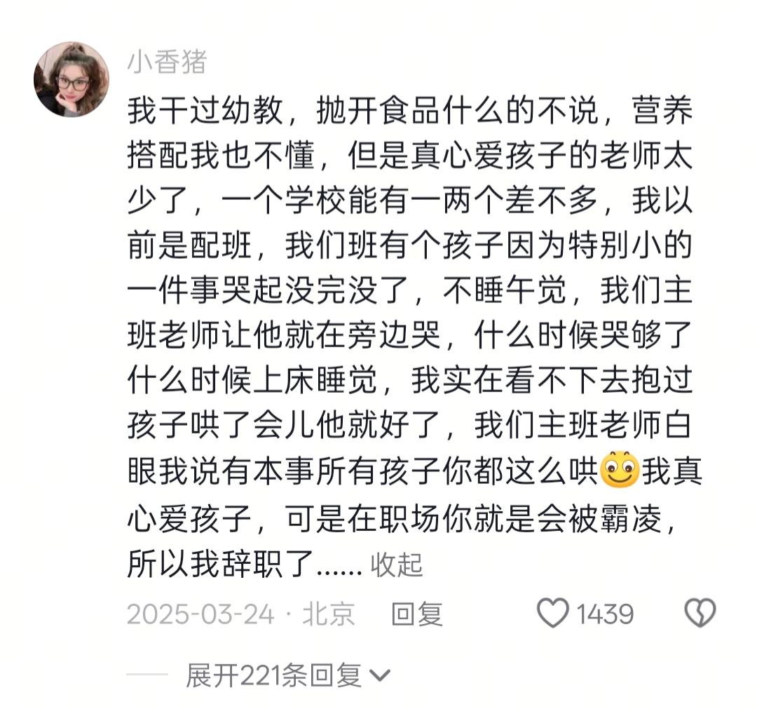 幼儿园入学季,4岁不到的孩子,有没有必要上幼儿园?一直争议比较多。幼儿园的底,还得幼师来揭。一条辞职幼师分享的园中老师管理孩子的情况,真的让人大跌眼镜。她们把心眼,放在了才几岁的儿童身上,可悲。 孩子放进有资质,幼师素质好的学校班级,那真是福气。但如果进入的是,那些管理混乱,没有职业道德的幼师班级,孩子真的太可怜了。