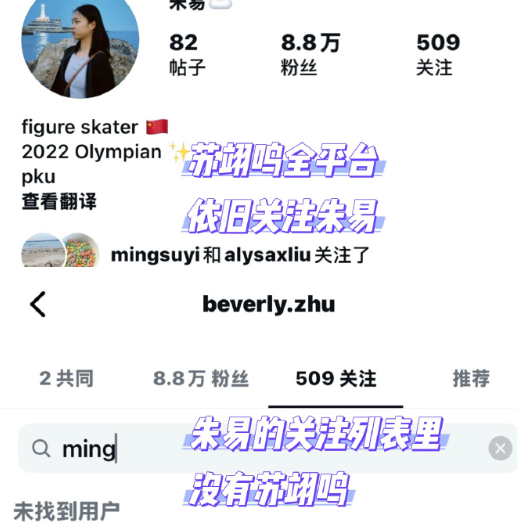 突发!朱易ig取关苏翊鸣,马上去ig看了下,还真取关了 苏翊鸣最新动态是两小时前po了一个女生的照片,经好心网友提醒这是和小苏师出同门的师妹深田茉莉,也是今年的米兰冬奥会单板滑雪坡面障碍冠军。