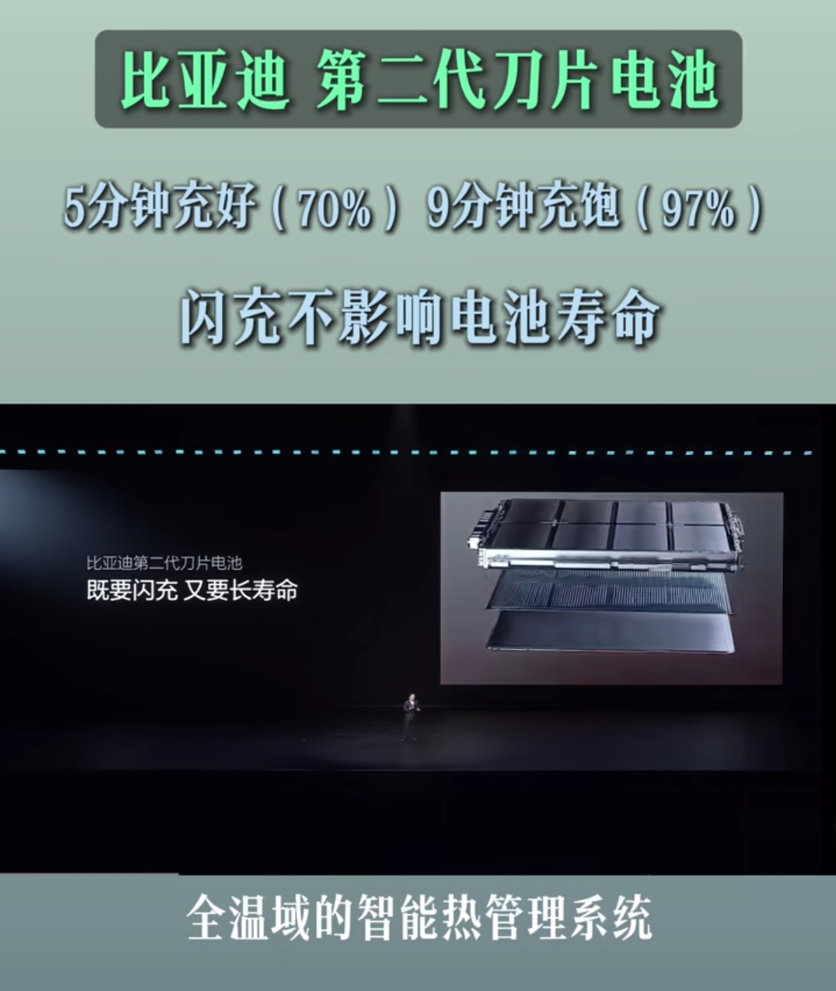 一出手就是大手笔,相当于所有比亚迪电车直接更新换代了。第二代刀片电池性能优越,闪充只需9分钟就能充满,堪比加油。而且不燃不爆安全无忧,使用寿命还长,续航能力达1000公里。 最为关键是大量车型全面配备,是量产车,下一步去店里买到的就是这款电池了,连20万左右的车型都上了。 科技催生产品换代加速,电车更是首当其冲,感觉有点像上世纪末本世纪初手机更新的速度,模拟机刚用几天,GSM数字网络就来了,白屏刚换彩屏,大屏又来了,特别是智能机时代,基本年年换一代。 苦的唯有早买一年的那波人! 那么,面对日新月异的变化,是坐观其变,还是勇于吃螃蟹,你怎么选择?!