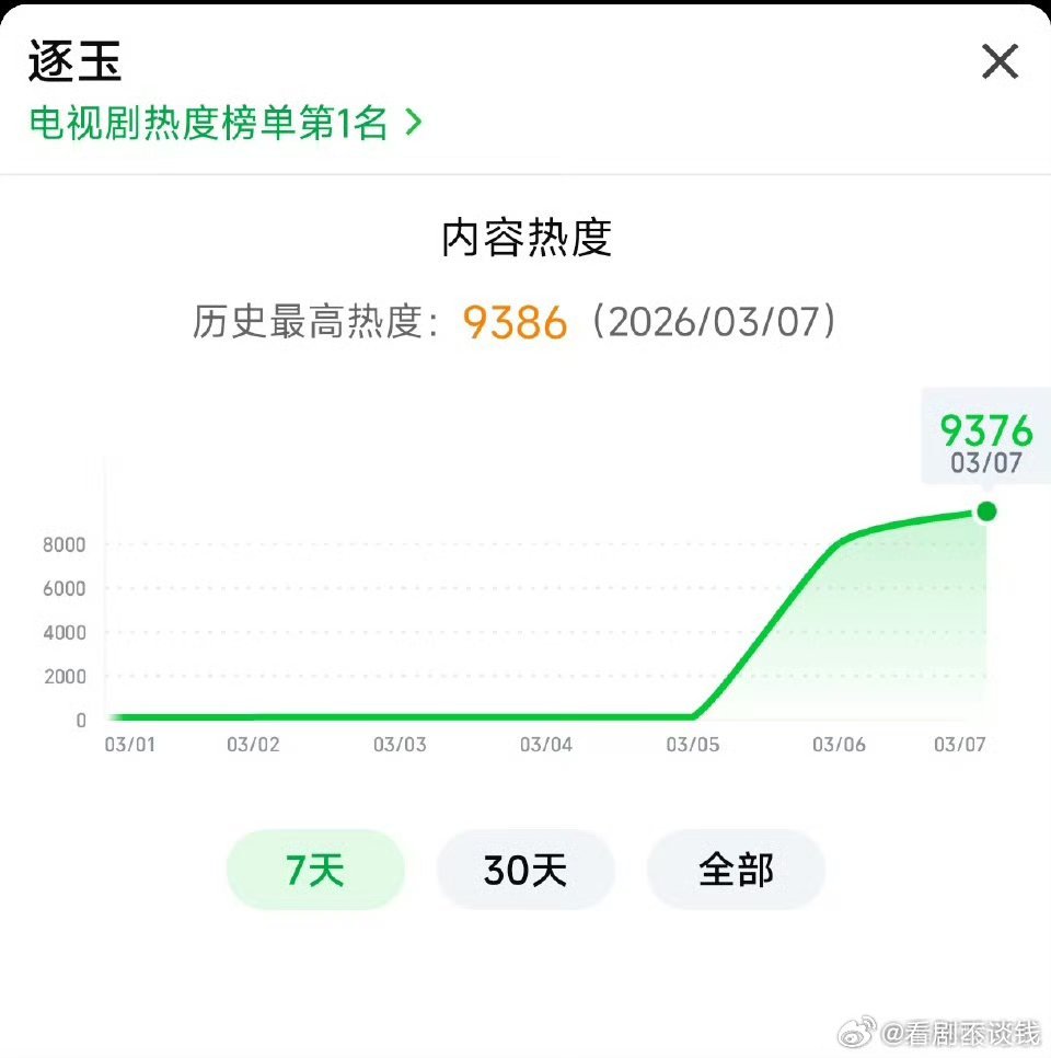 张凌赫田曦薇《逐玉》大爆剧次日热度腾讯28500+,爱奇艺9300+