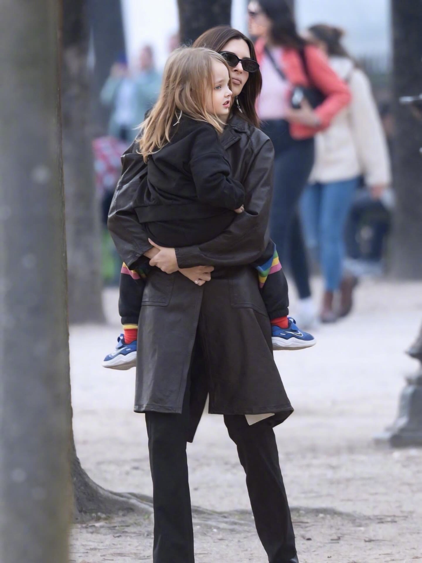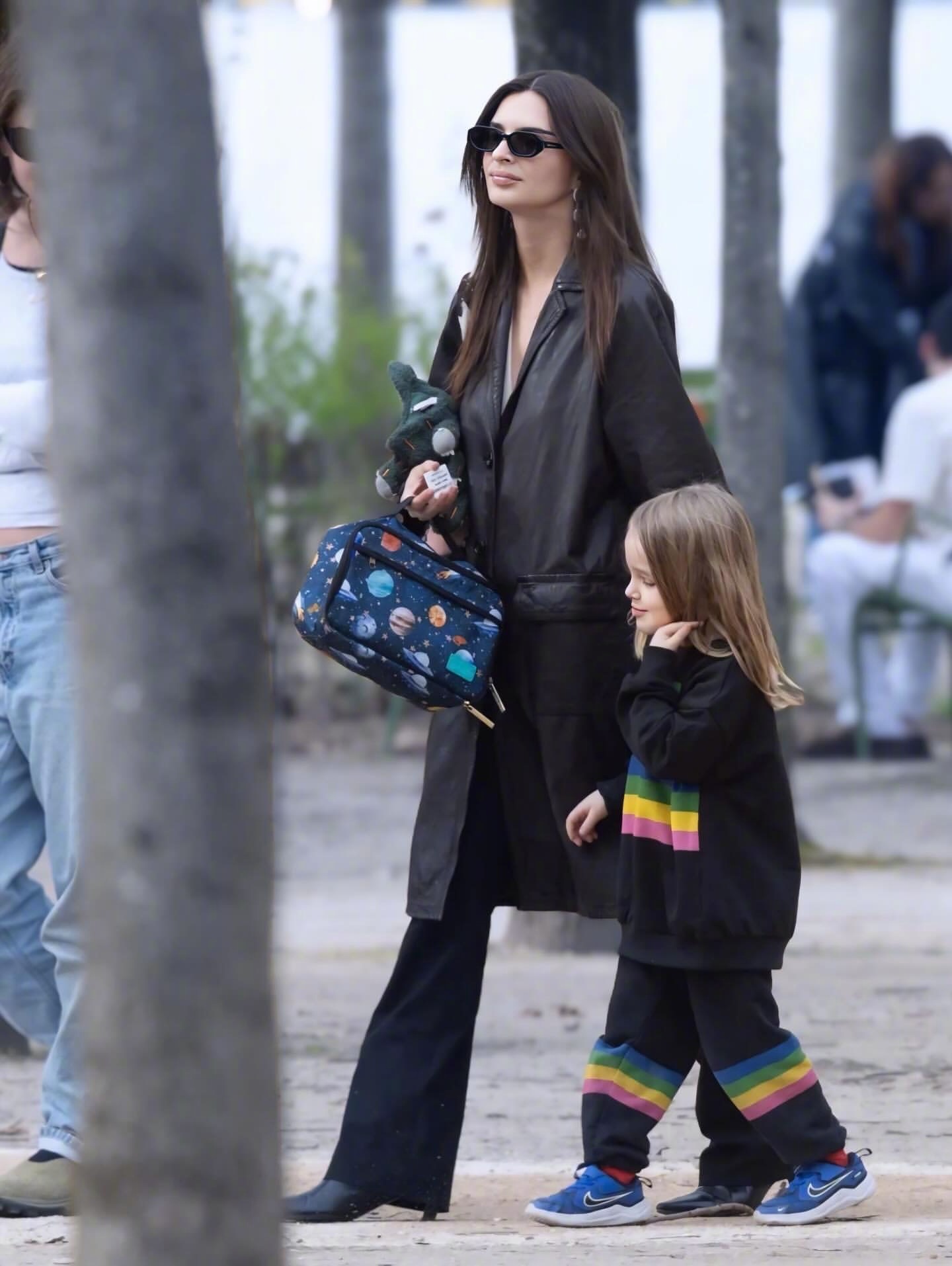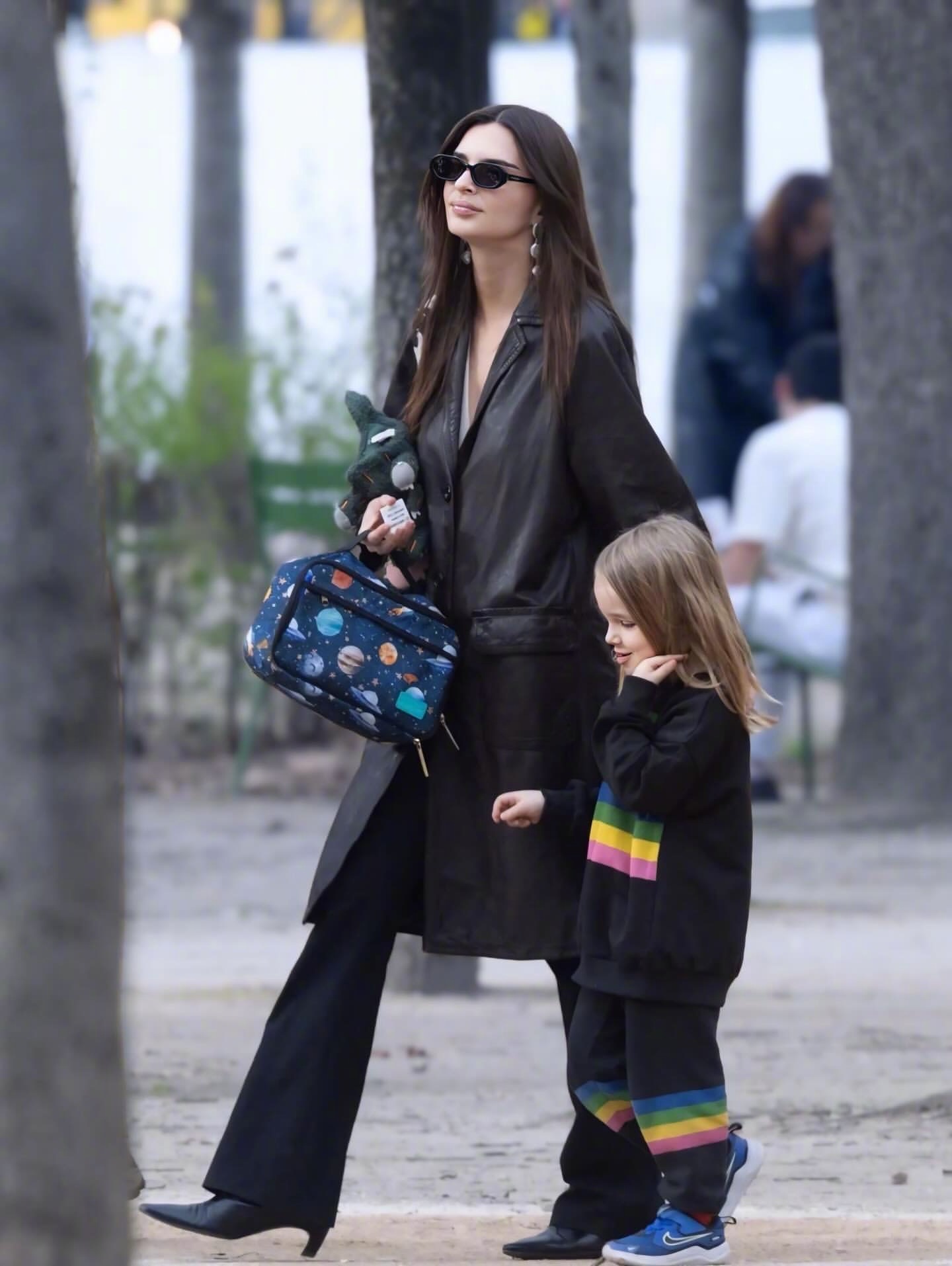 近日出席时装周的艾米丽·拉塔科夫斯基还带着儿子,不看秀时带着儿子西尔维斯特·阿波罗现身巴黎街头的一个公园被拍。这一眨眼儿子直接长发飘飘了!