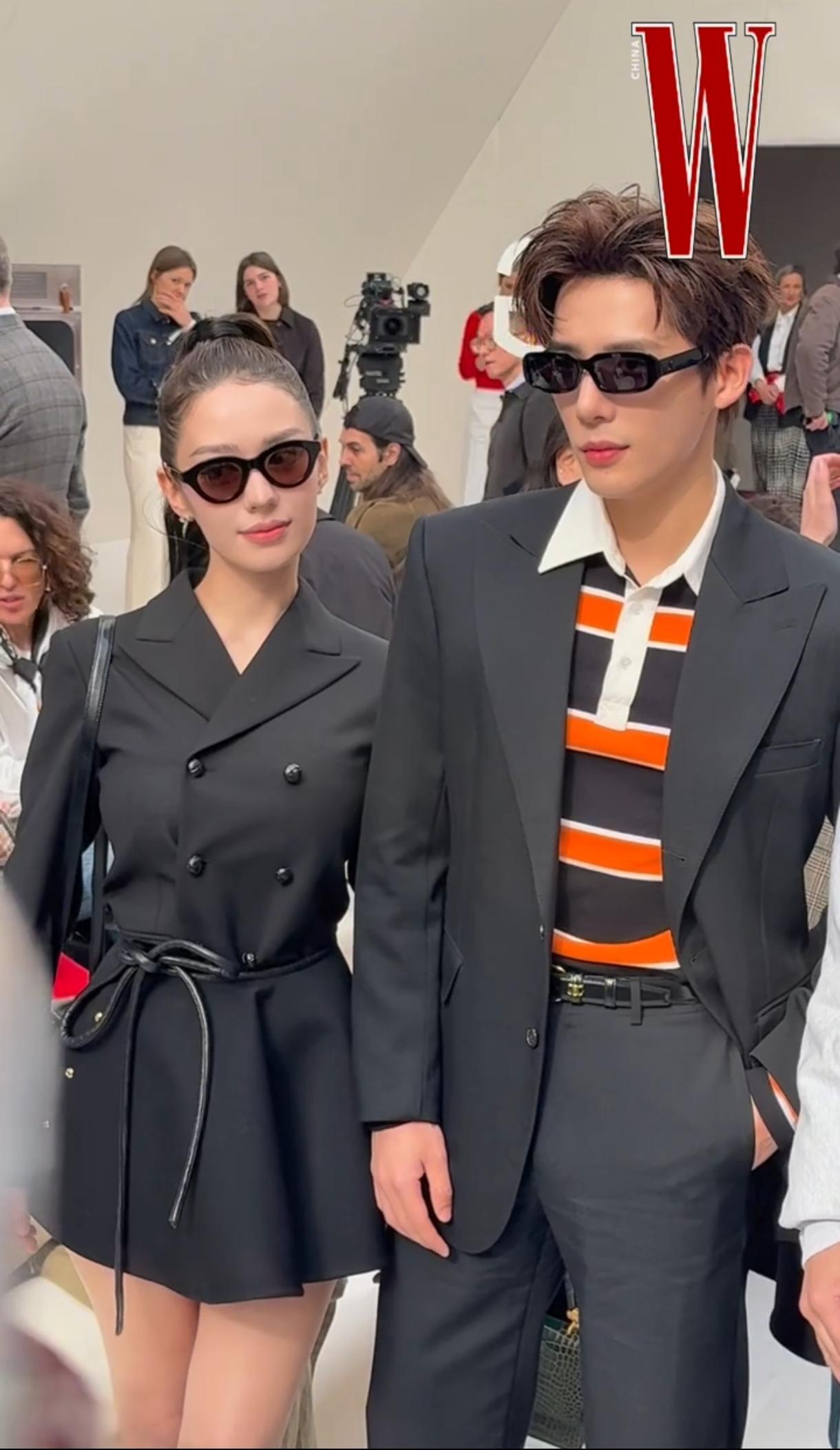 陈都灵巴黎看秀现场交叉着腿,自信大方,短发俏皮明媚!