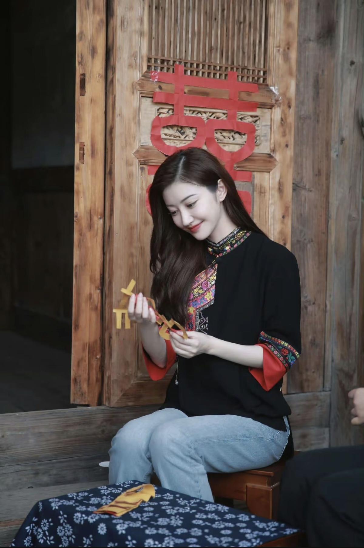 景甜这组民俗风写真太绝了!红“囍”剪纸、民族刺绣上衣,甜笑治愈力满分,是从画里走出来的温柔美人呀[比心][玫瑰]娱乐明星