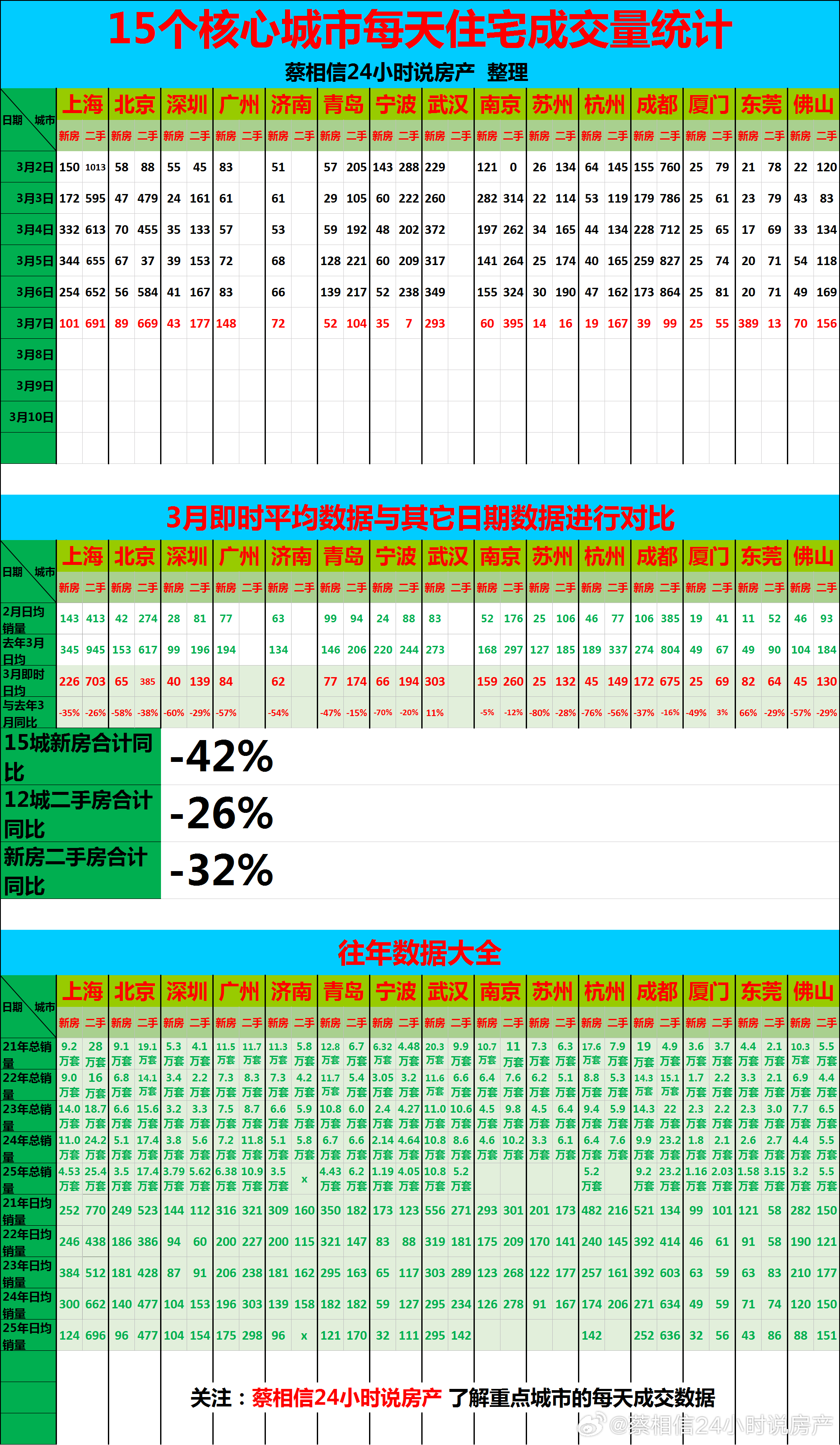 今日点评:3月前7天,新房同比下降42%,二手房同比下降26%,房地产房价