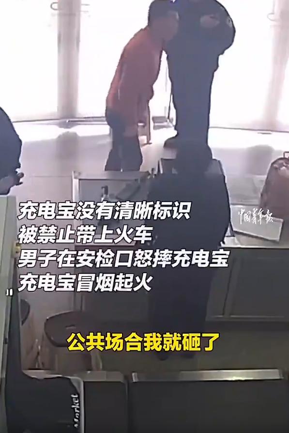 无知者无畏!河南南阳,一男子到车站乘车,在过安检时,因为携带的充电宝没有标识被拒绝带入车站,没成想,男子一气之下直接把充电宝摔到地上并起火,男子不仅充电宝没了,还被行政处罚。网友:他用实际行动证明了为什么不能带上火车 视频可见,工作人员当时的解释相当耐心,告知男子充电宝要有清晰的标识,而且不能超过100瓦时,男子的充电宝是不符合的,有三种解决方案,第一,找朋友拿回去。第二,放到车站寄存7天。第三,拿出去自行处理 按说这三条路够宽了,既没没收他的东西,也没难为他。结果这位大哥不知道是赶时间还是觉得被驳了面子,情绪直接失控。他抄起那个充电宝,狠狠往地上一砸 这一砸不要紧,充电宝瞬间冒烟起火 而他摔充电宝的地方就在候车室的窗帘底下。好在车站的工作人员反应快,拎着灭火器就冲上去了,几秒钟把火给灭了,没酿成大祸 网友们看完这事,评论挺精辟:他用自己的实际行动,证明了为什么不能带这种充电宝上火车 这话虽然带点调侃,但一点没错。充电宝这种东西,看着不起眼,但里面是锂电池。锂电池有个特性,怕摔、怕挤、怕热。一旦内部结构受损,正负极隔膜破掉,瞬间就会短路起火。这种火还不是普通的火,是热失控,干粉灭火器有时候都压不住,得用水或者水基灭火器降温才行 换句话说,这位大哥在大庭广众之下,用最极端的方式演示了一遍劣质充电宝的危险性 其实这事儿挺值得琢磨的。很多人出门在外,遇到安检被拦,第一反应就是对方在找茬,觉得是工作人员故意不让自己痛快。这种心理可以理解,毕竟谁都不想耽误时间 但咱们得换个角度想,安检员跟你无冤无仇,他拦你,图什么?图你那个没有标识的充电宝吗?他拿走也没用 这位老哥其实应该庆幸,它是在安检口的地上炸的,不是在飞驰的火车车厢里炸的。在车站炸,顶多赔个充电宝、挨个处罚;在车上炸,那可就不是行政处罚的事儿了