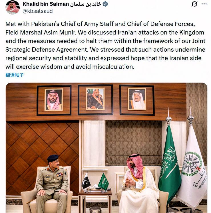 巴基斯坦深陷中东“烫手山芋” 中东局势突变,沙特竟祭出“防御协定”大招,向盟友巴基斯坦发出“求救信号”,巴基斯坦瞬间被推上风口浪尖,左右为难,会否“下场”参战成了焦点。 当地时间周六,沙特国防大臣哈立德·本·萨勒曼在社交媒体X上发声,他与巴基斯坦陆军参谋长阿西姆·穆尼尔会唔,商伊朗报复性行动及沙特面临的安全危机。双方重点讨论了伊朗对沙特等海湾国家的导弹与无人机袭击,还商定在“联合战略防御协定”框架内制定应对措施。 这份协定去年9月签署,核心是“一方受攻击,视为双方受攻击”。沙特借此摆脱对美国安全保障依赖,巴基斯坦也做出分量极重的防务承诺。可如今,协定面临严峻考验。半岛电视台报道,沙特接连遭袭,巴基斯坦内外压力巨大。 内部,巴沙防务联系紧密,约1500至2000名巴军人驻沙特,数百万劳工在沙特等海湾国家务工。若不履行承诺,防务合作和劳工生计都受影响。外部,巴与伊朗接壤900公里,跨境武装问题如定时炸弹。且国内什叶派民众对伊朗相关事件有情绪,若站沙特一边,可能引发国内不满和社会动荡。 目前,伊斯兰堡密集外交沟通,试图平衡各方。但分析人士认为,中东冲突升级,巴基斯坦两头兼顾的平衡策略将难以为继。中东局势复杂,巴基斯坦如何抉择,关乎自身命运,也将影响中东局势,大家快来评论区聊聊!