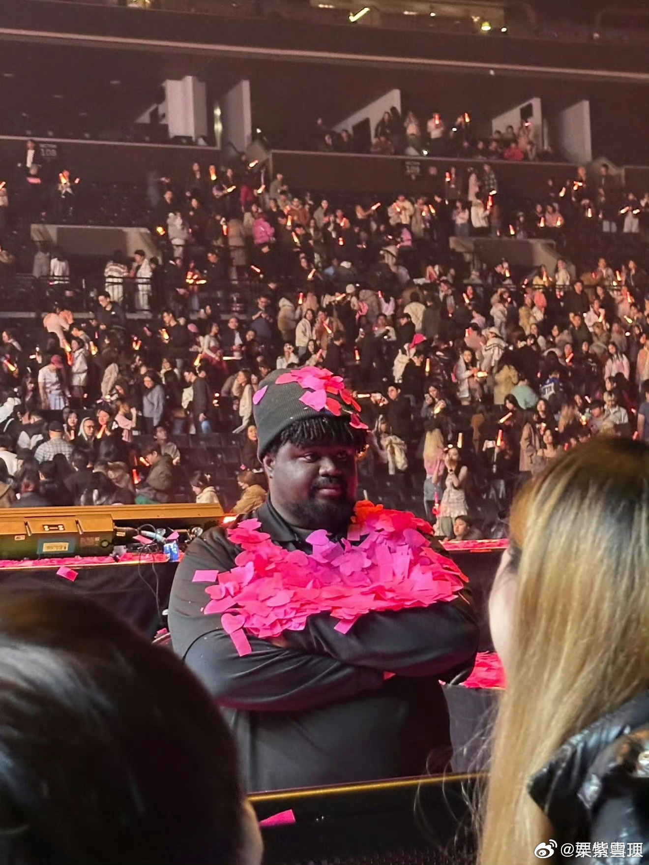 汪苏泷保镖的世界真变成粉红色了这场粉色彩带雨也落到了汪苏泷的黑皮保镖上啊看图真