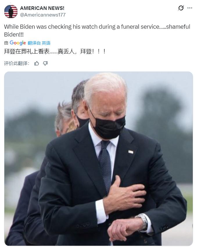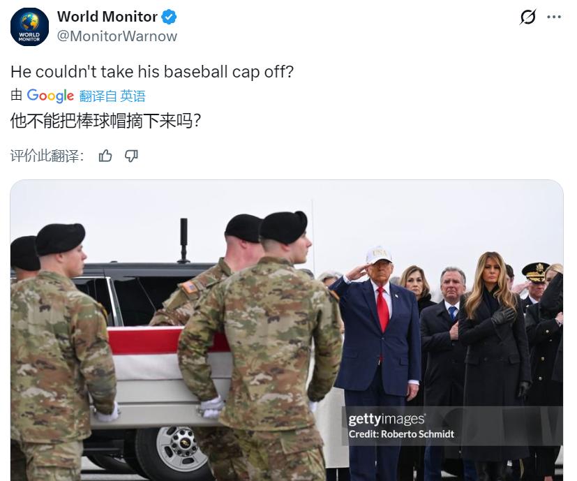 特朗普在多佛举行的阵亡士兵遗体移交仪式上戴着棒球帽! 有人对其指责对死者不尊重,也有人丢出当年拜登看手表的图片。