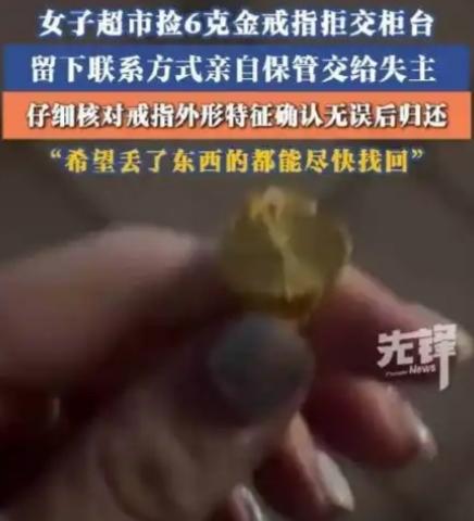 很多人第一反应是:捡到东西交柜台,不是天经地义吗? 可山东青岛这位刘女士,偏不按常理出牌。超市地面上一枚6克重金戒指,价值不菲,工作人员劝她交服务台,她当场拒绝:我亲自保管,留电话等失主! 这一举动,乍看“较真”,实则把人性看得通透。服务台人多手杂,流程层层转手,贵重物品一旦出错,失主大概率再也找不回。与其赌别人的责任心,不如自己扛到底——这不是不信任,是对他人财物的极致负责。 她留下联系方式,寸步不离地守着,整整40分钟,终于等来失主。没有随意交付,而是仔细核对购买发票、戒指照片,细节全对上,才亲手归还。全程不图感谢、不贪分毫,只愿物归原主。 面对全网狂赞,她只淡淡一句:祝大家新的一年一切顺利,丢了东西的都能尽快找回! 没有豪言壮语,却比任何鸡汤都戳心。我们总说好人难做,怕好心被辜负、怕行善惹麻烦。可刘女士用行动证明:真正的善良,从不是敷衍走流程,而是有温度、有底线、更有智慧。 她守住的不只是一枚金戒指,更是人与人之间最珍贵的信任。这才是普通人最动人的正能量!