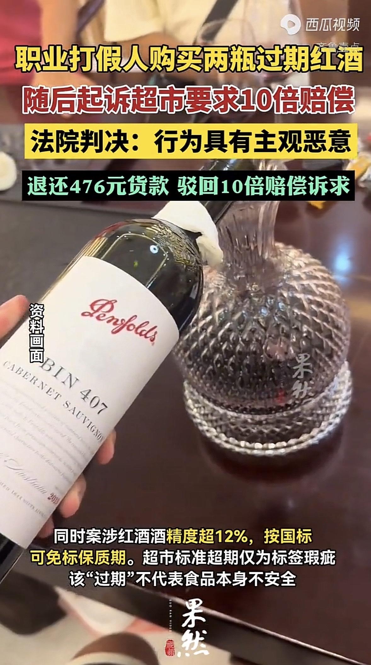 职业打假人花476元买过期红酒索赔5236元被驳回,法院:不支持以牟利为目的的‘知假买假’