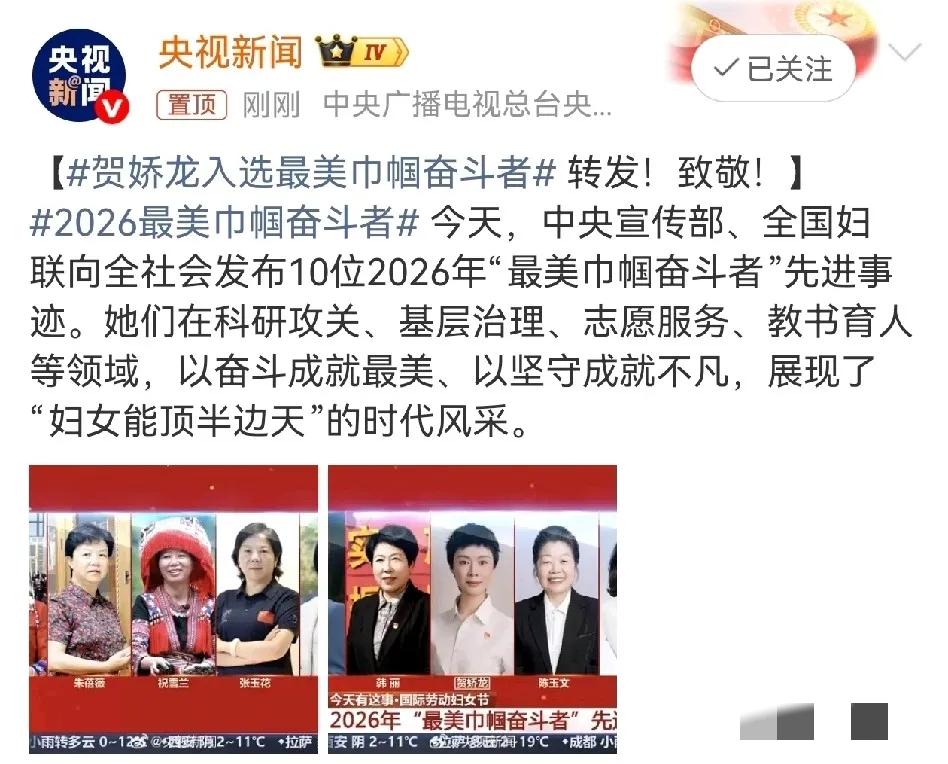 3月8日,妇女节这天中央宣传部、全国妇联用最权威的方式为贺娇龙正名,她的付出终于有了回应。被评为“最美巾帼奋斗者” 贺娇龙虽然已经离开我们53天,但是她永远活在大家的心中,她的一袭红衣鲜衣怒马成了绝响,只有模仿,从未被超越。