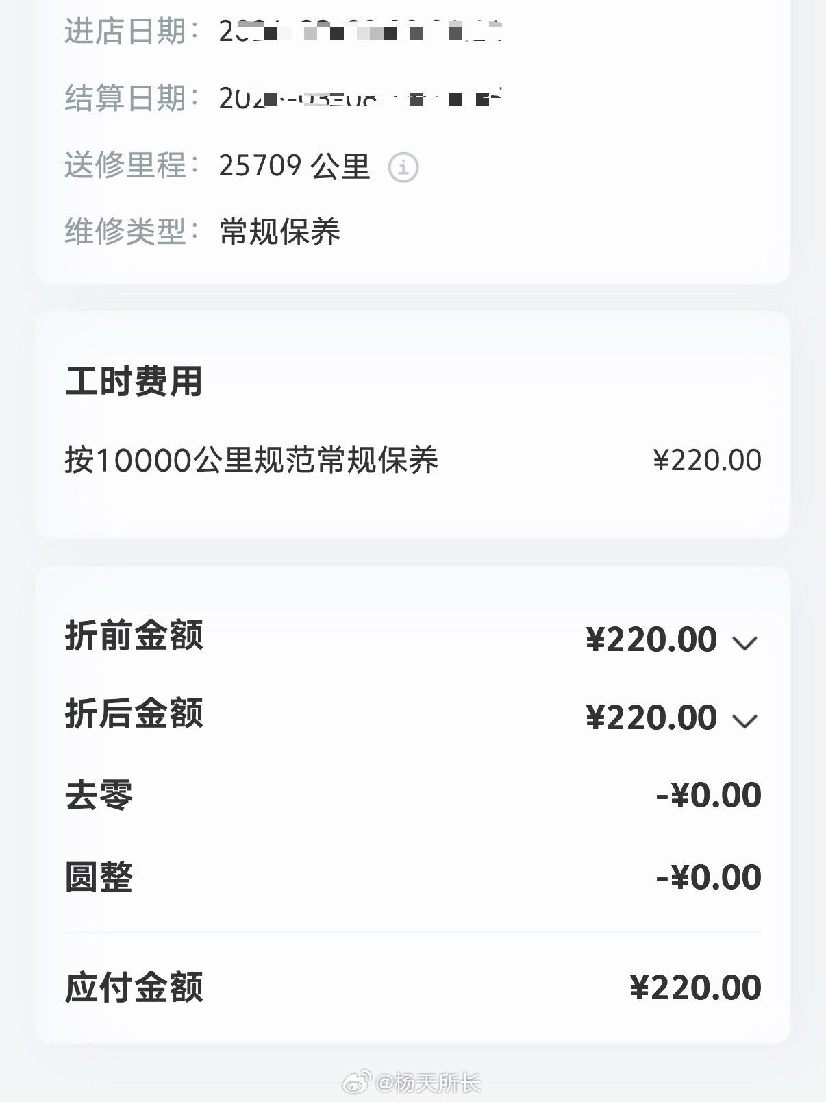 众所周知,电车保养便宜2.5 万公里,第二次保养没换空调滤芯,只工时费 220 元是便宜吧