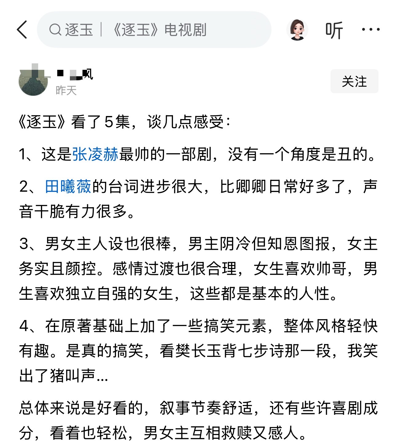 《逐玉》看了5集,谈几点感受: