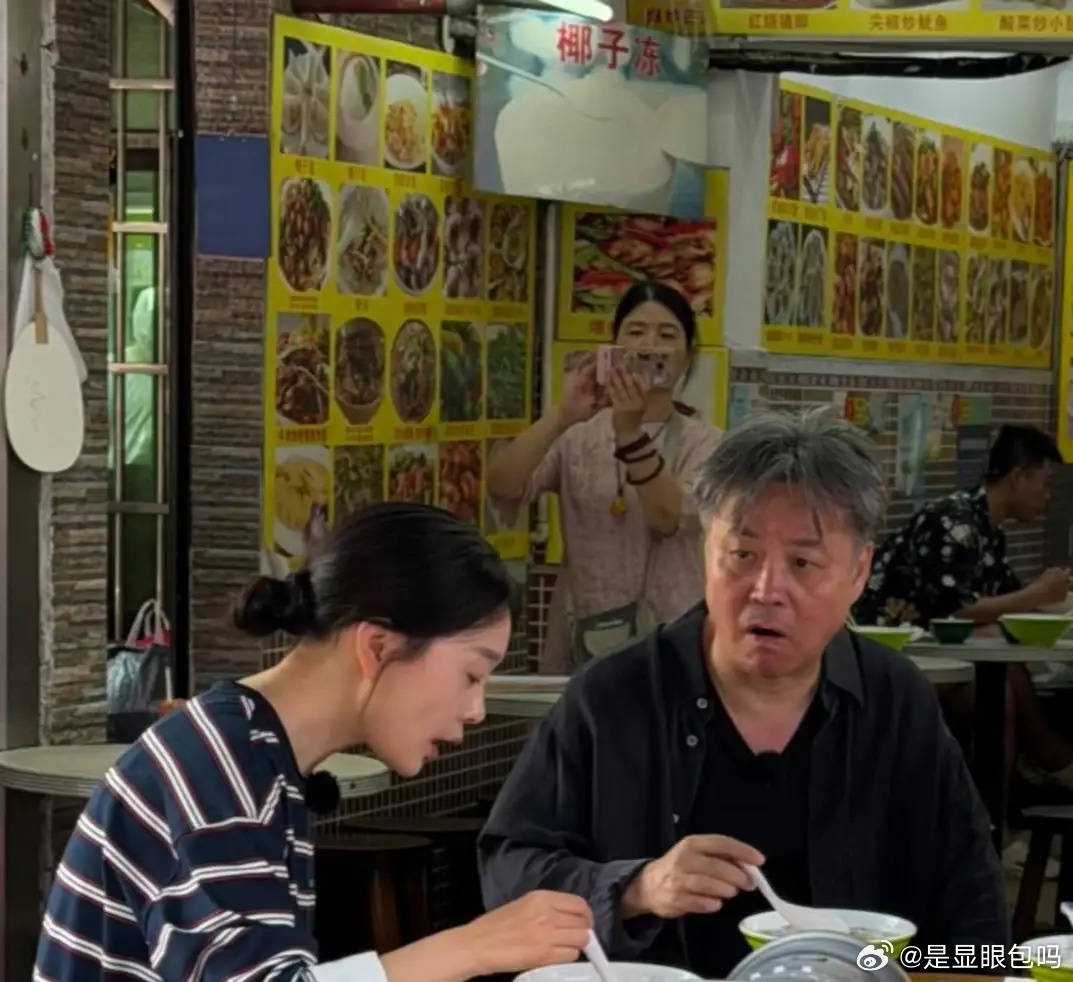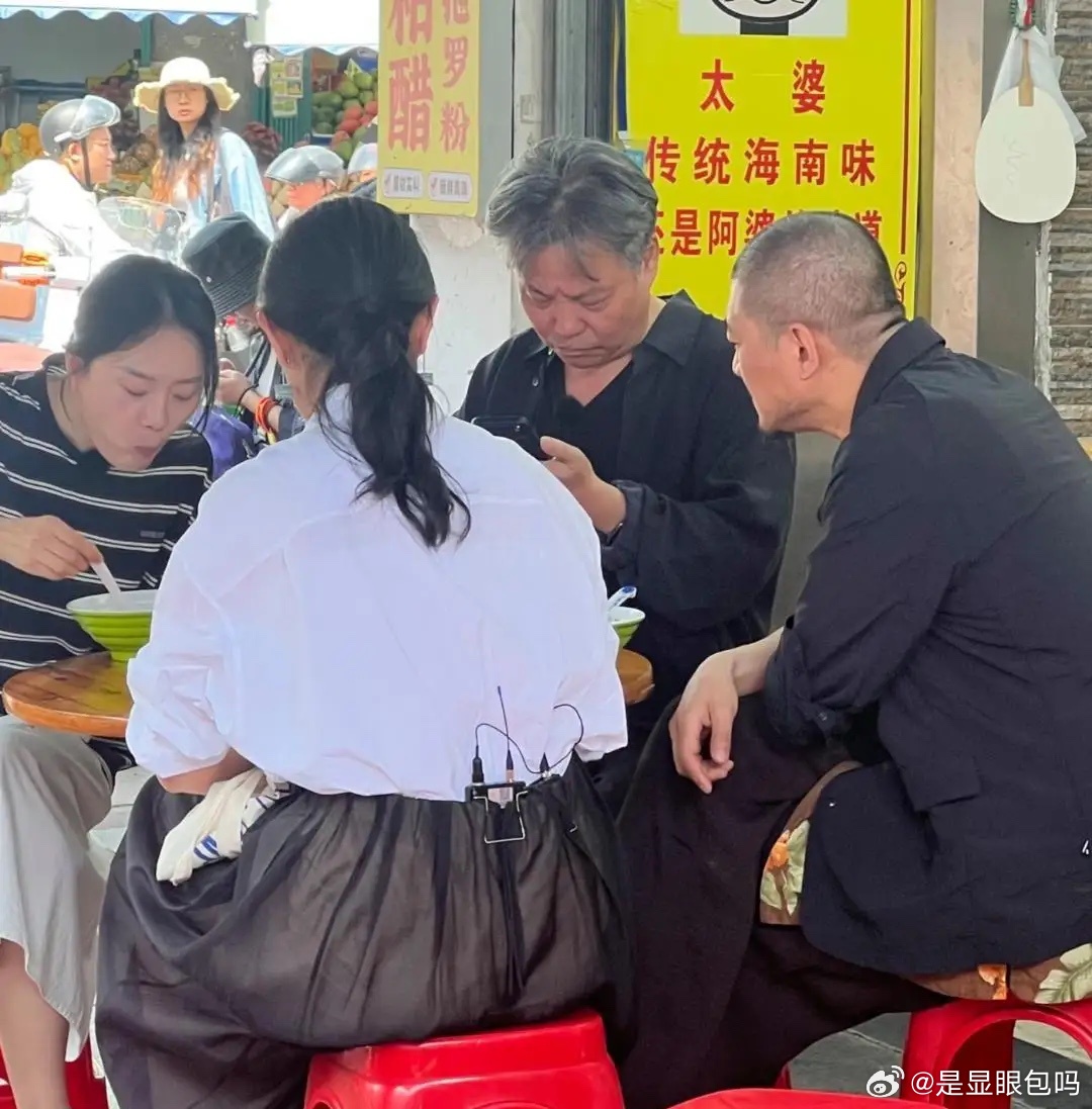 66岁余华在海南三亚市场和朋友吃抱罗粉,他打扮好低调,他穿着一身朴素的衣服,头发