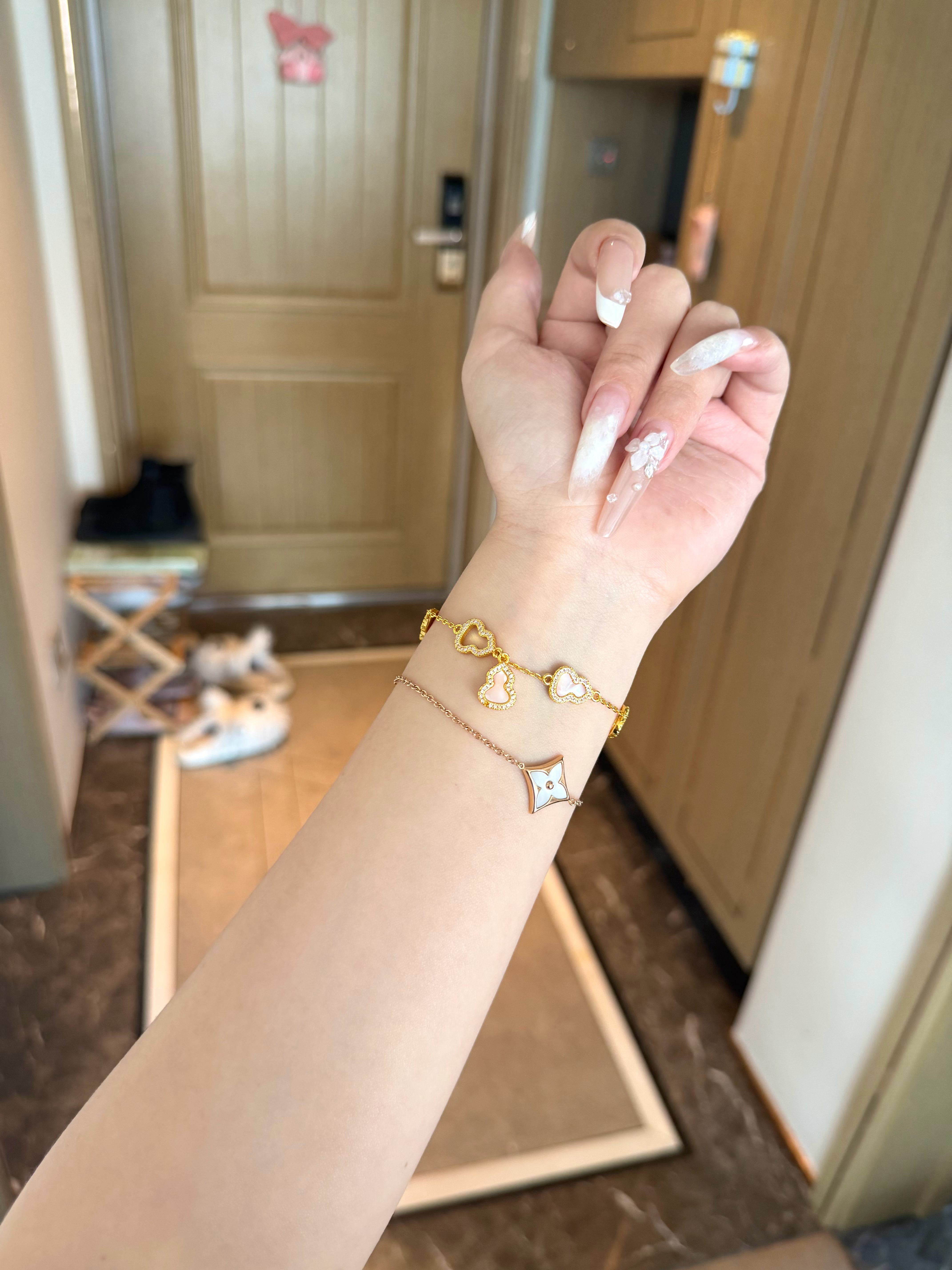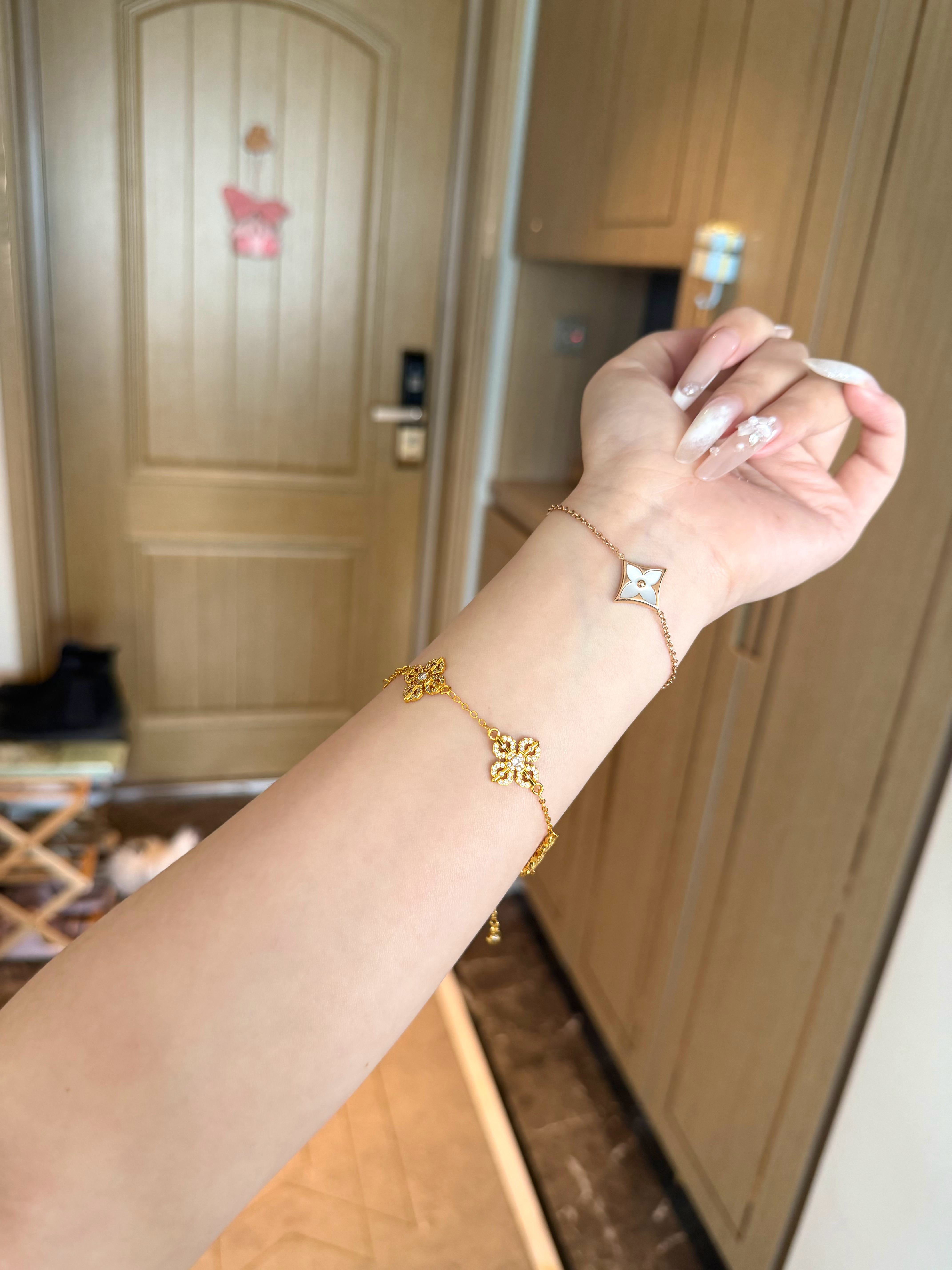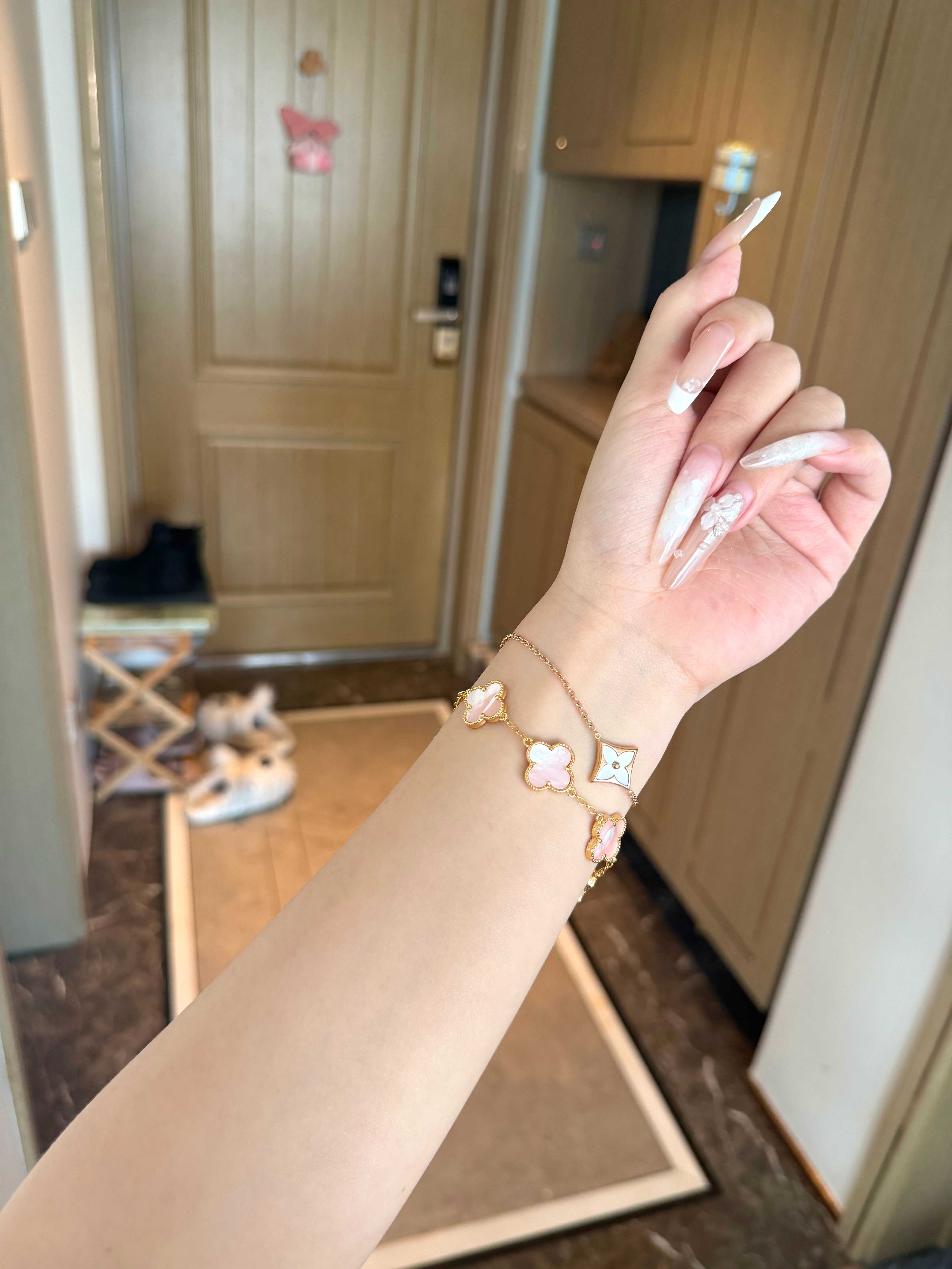 三个新款,天然粉贝母铜镀金,橱窗已上(z品没有这个颜色,夏天穿小裙子当个饰品戴着玩玩拍拍照没问题 樱花粉贝母颜色超漂亮~我一个一个选的