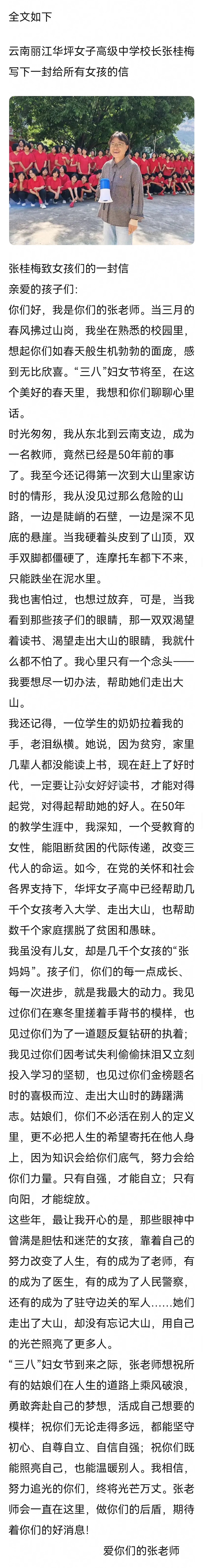祝所有的姑娘们在人生的道路上乘风破浪,勇敢奔赴自己的梦想,活成自己想要的模样;祝你们无论走得多远,都能坚守初心、自尊自立、自信自强;祝你们既能照亮自己,也能温暖别人。