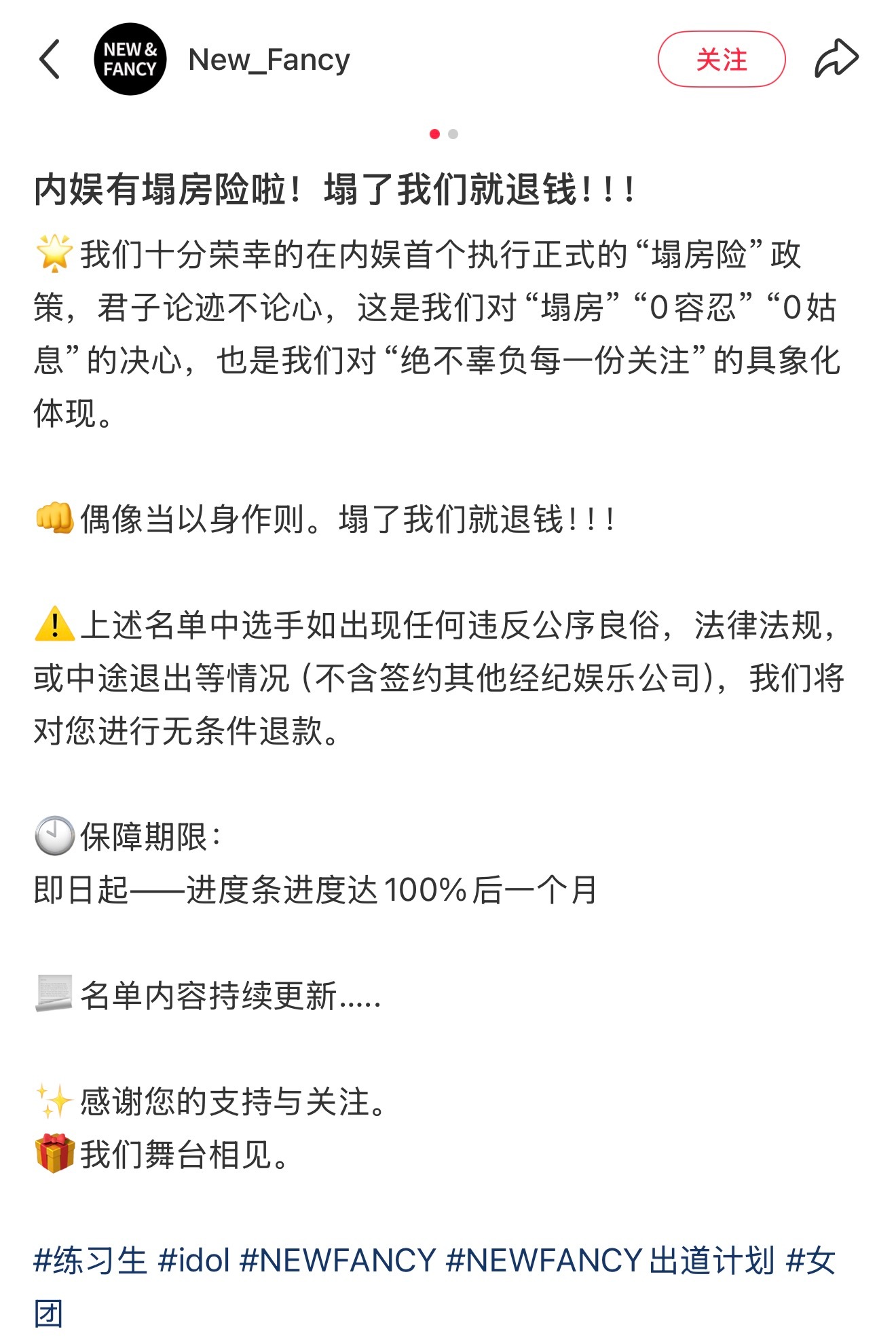 内娱还真要有塌房险啊男女团都有保期暂时一个月,成团后出新政策