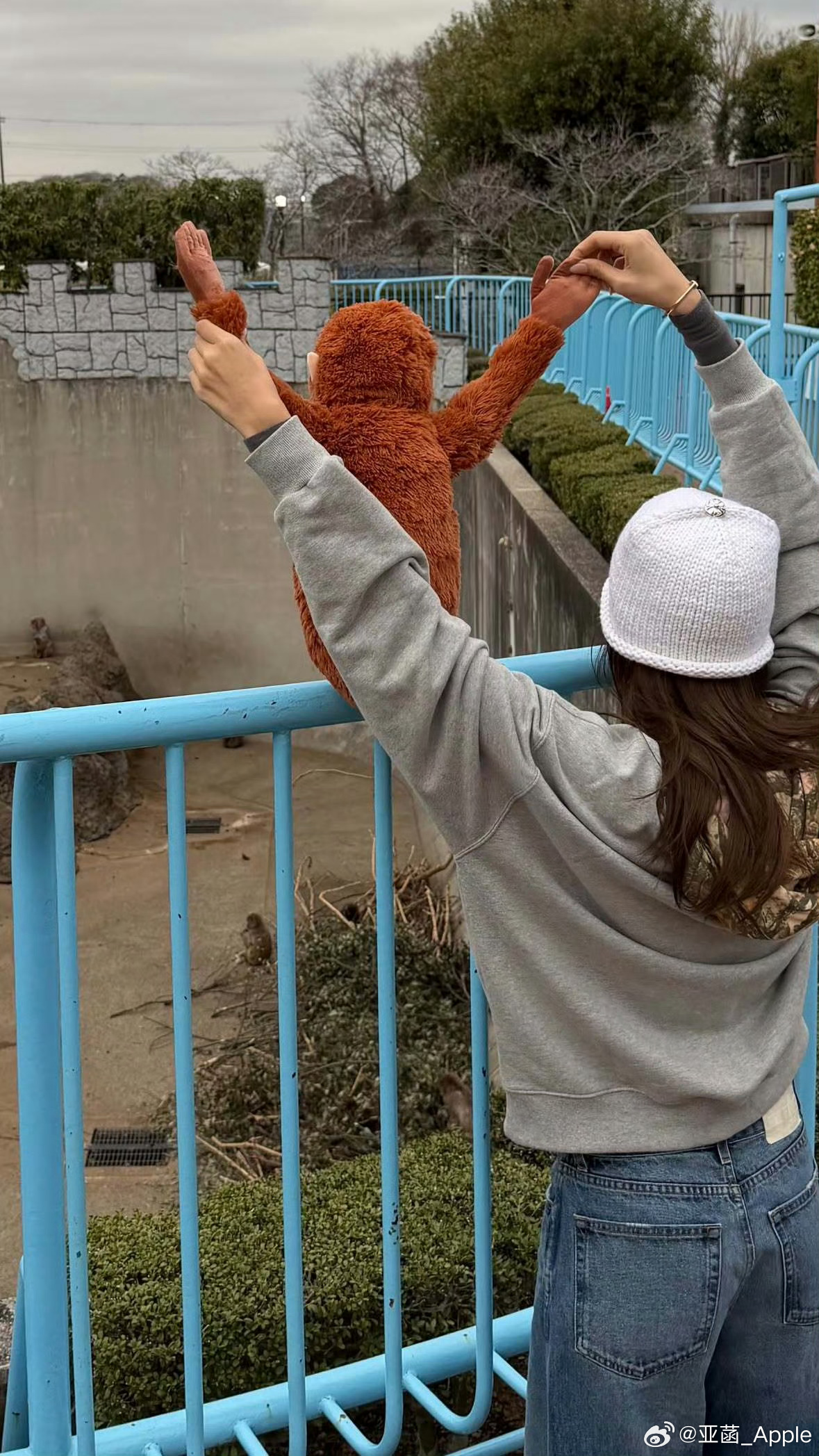 她还特意带上了同款 IKEA 红猩猩玩偶,和小猴子“合体”拍照,都好可爱啊