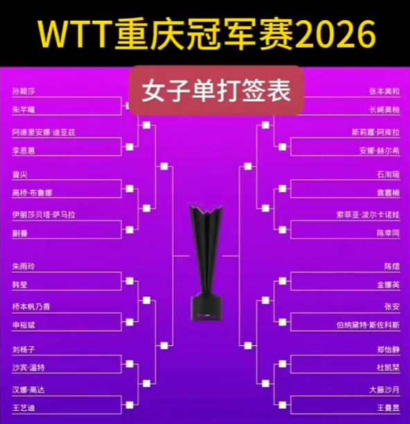 WTT重庆冠军赛抽签结果来了,孙颖莎再战朱芊曦,朱雨玲复出对韩莹,梁靖崑vs向鹏内战,王楚钦卫冕之路开启,重庆见!