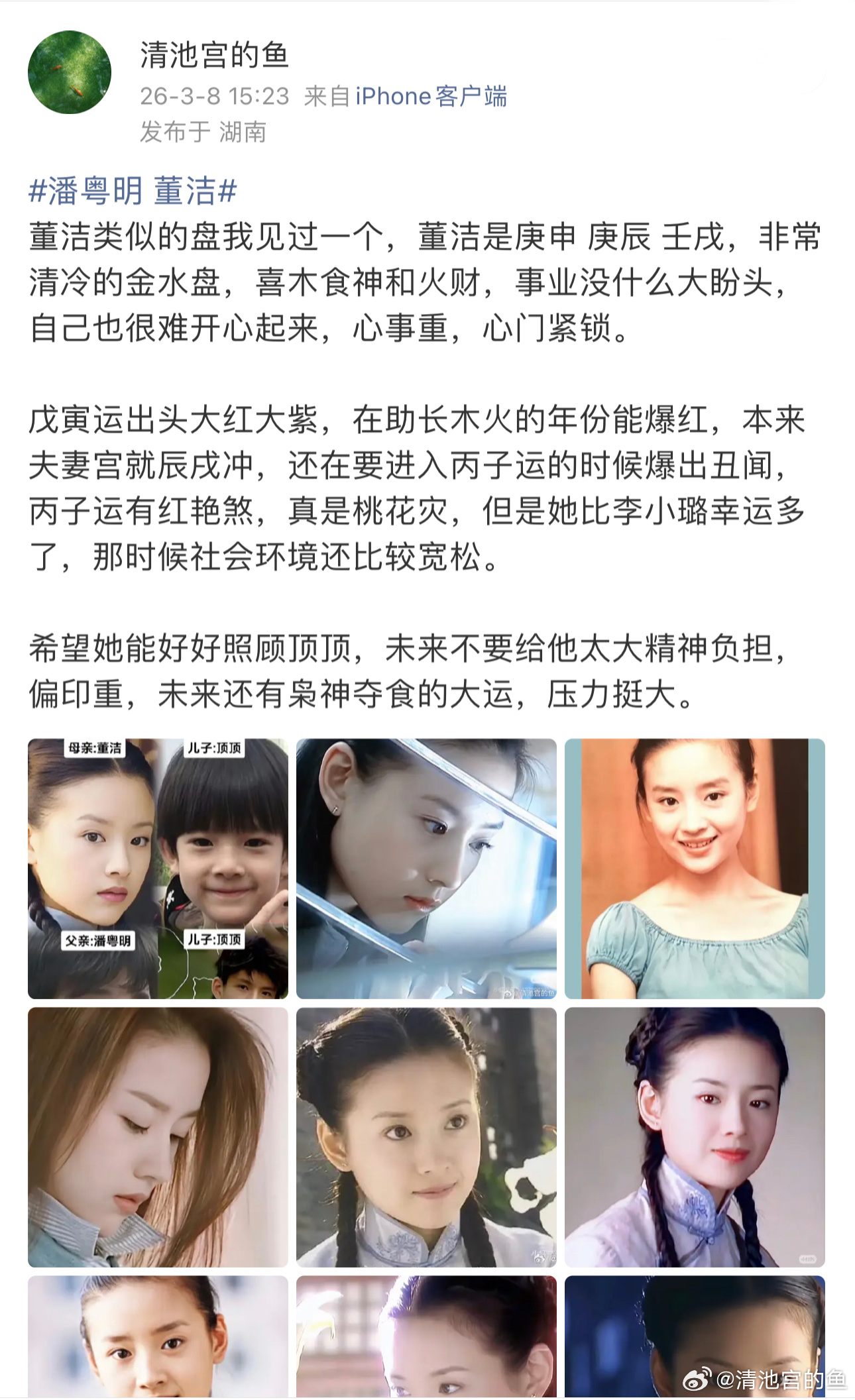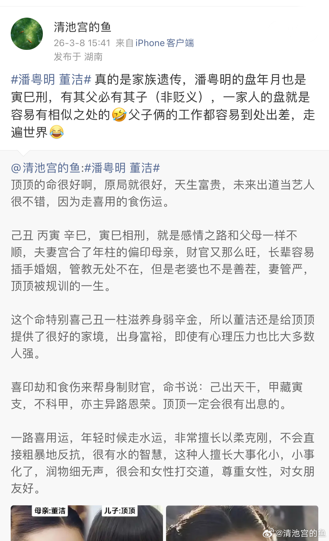 潘粤明 董洁这一家人的共性是情路坎坷,董洁身最强,她和潘粤明能在一起也是有原因的,她喜木火🔥,潘粤明喜金水,灵魂的吸引,顶顶的命和妈妈更合,缘分更深,不适合跟着他爸爸,有些事看似求不得其实也是老天垂怜,一切都是最好的安排。