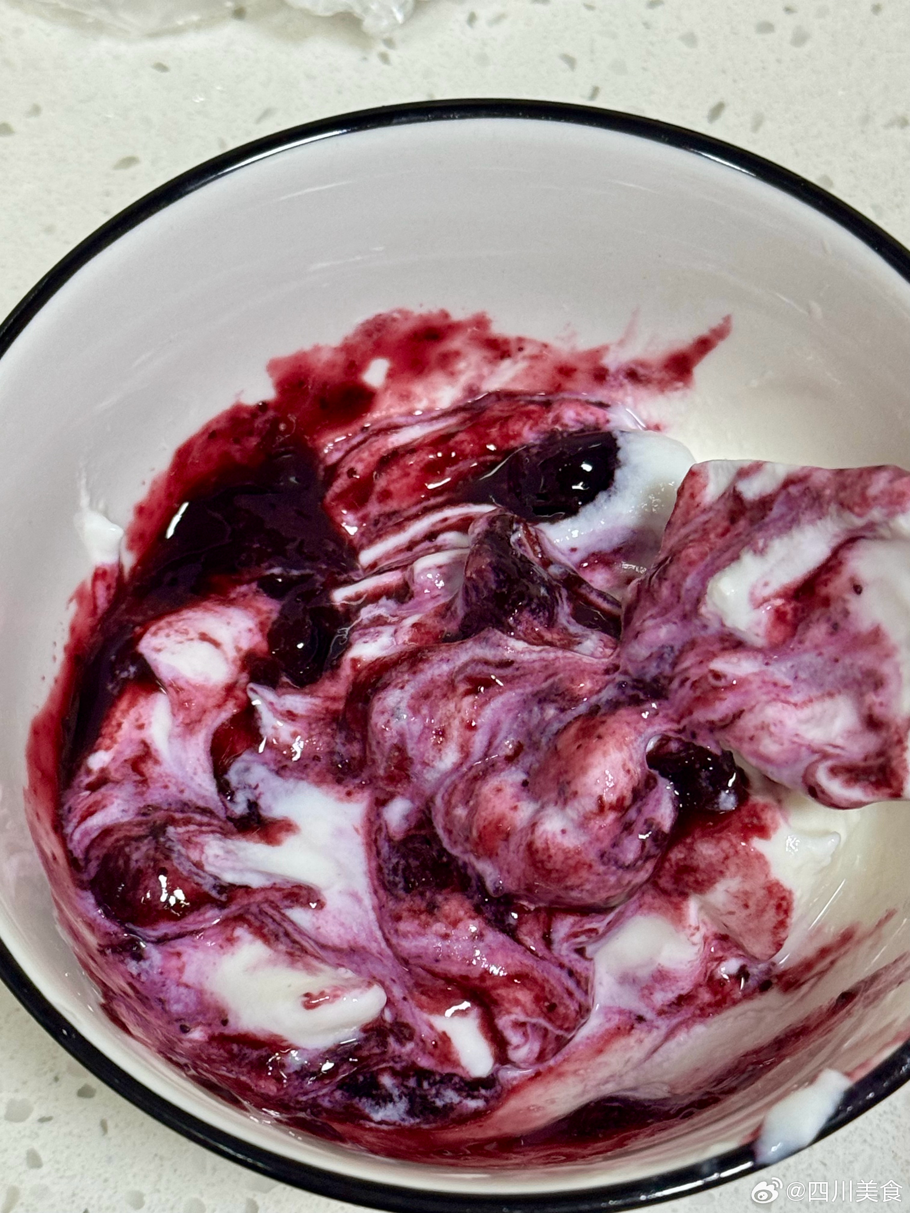 调好放冰箱冷藏,就会变得粘稠,配无糖酸奶好吃,变成了健康无添加的蓝莓酸奶,还能吃到蓝莓颗粒,配吐司应该也很不错,大家有机会一点要试试!川川逛吃日常