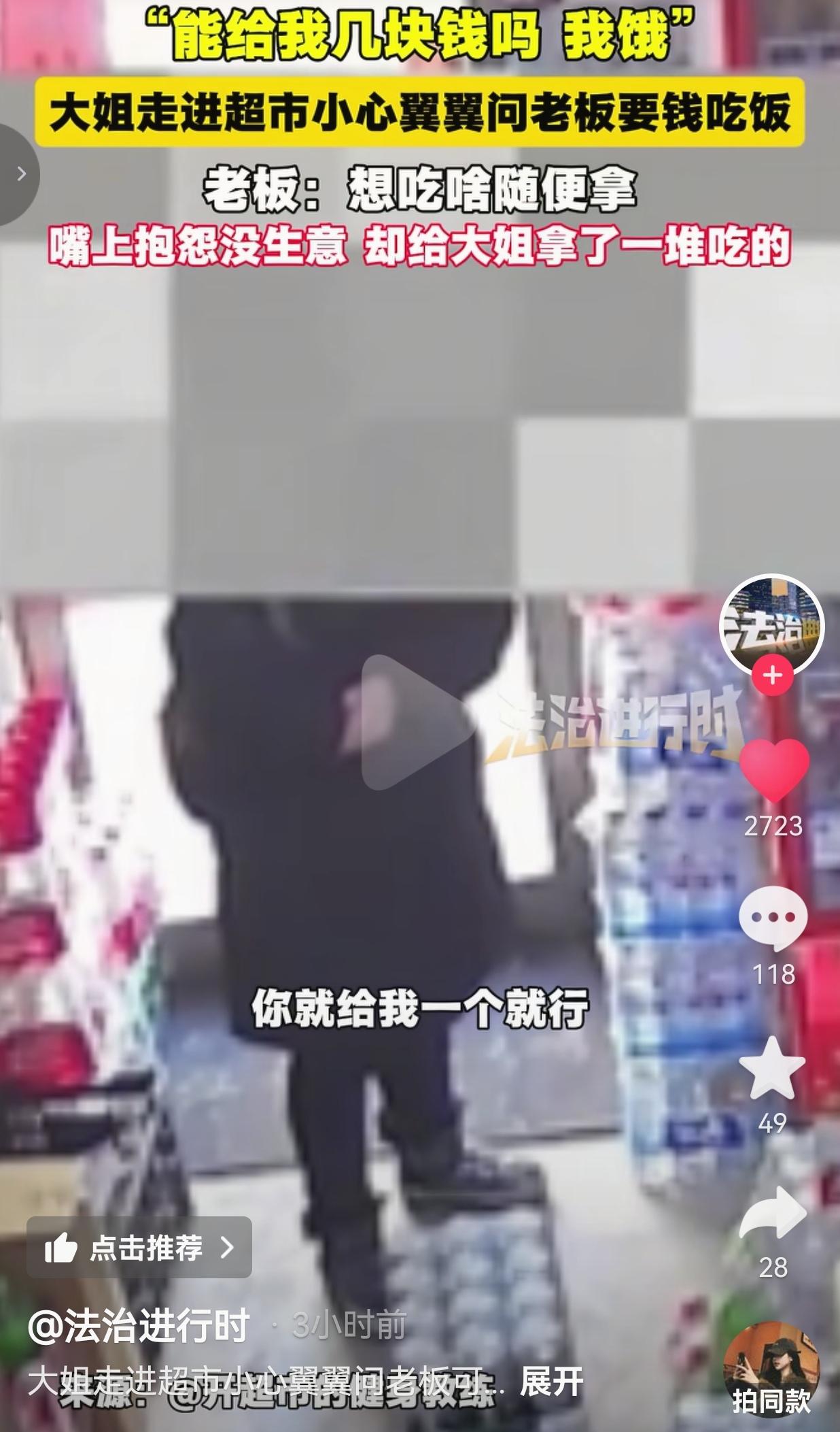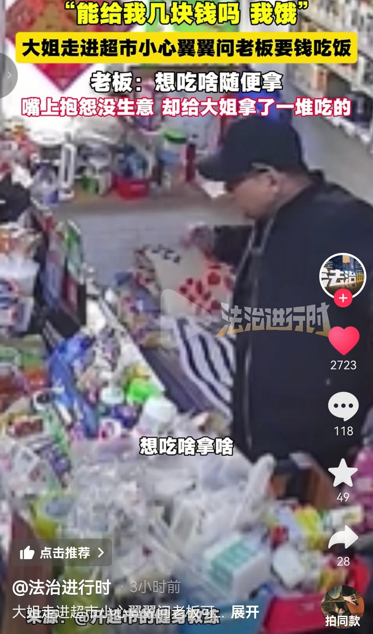 看哭了!黑龙江大姐饿肚子进店求助,老板嘴上喊穷却塞满满一袋吃的!网友:这才是人间该有的样子! 3月7号那天,黑龙江的天还带着一股子刺骨的凉,风呼呼刮着。一位大姐低着头,慢慢悠悠挪进了路边一家小超市。 她站在柜台那儿,肩膀缩着,头埋得低低的,声音小得跟蚊子似的,看着特别局促,好半天才挤出一句:“老板,能给我几块钱不?我饿……” 就这一句话,听得人心里咯噔一下,真的太难受了。谁能忍心拒绝一个饿到肚子咕咕叫、还鼓起这么大勇气开口的人啊? 超市老板是个看着特实在的东北大哥,他也没多问大姐咋了、遭遇了啥难处,也没琢磨这那的,就笑着来了一句:“想吃啥随便拿!” 这话一出,大哥转身就往货架那边冲。面包、牛奶、火腿肠,还有大姐顺口提过的矿泉水,一样样往塑料袋里塞,塞得袋子鼓鼓囊囊,那动作叫一个麻利,半点犹豫都没有。 大姐还在一个劲客气,摆着手连连推辞:“不用不用,就拿一个就行,不麻烦你了。”她是打心底里不想占人便宜,哪怕饿得发慌,也想守住最后一点体面。 可老板硬是把袋子塞到她手里,一边塞还一边念叨:“拿瓶奶,再拿瓶水,够吃了,拿着赶紧走,别在外面冻着。”那语气粗声粗气的,透着咱东北人的豪爽,根本没把这点东西放在心上。 最戳人的细节就在这儿!老板一边给大姐装吃的,一边嘴上嘟囔着:“这一上午就来俩人,还搭进去点东西,这生意真难做哟。” 这话听着像在抱怨,像在算着小账,透着咱东北人过日子的实在,可手里的动作却没停,反而把袋子塞得更满了。他不是不知道赚钱不容易,几块钱的东西,对他来说可能是一天的薄利,可对大姐来说,这就是能填饱肚子的希望啊! 大姐接过吃的,对着老板连连鞠躬,眼泪在眼眶里打转,哽咽着反复说“谢谢老板”。老板却只是摆了摆手,粗声粗气地说“没啥事,赶紧回去吧”,转身又去整理货架,仿佛只是帮了个微不足道的小忙。 这事儿发到网上,网友们全破防了,评论区全是暖心的呼声,有的网友说:“东北大哥这嘴硬心软的样子,简直就是咱身边的邻居大爷啊!嘴上说亏了,手却比谁都实在,这才是真性情!祝老板生意兴隆,开一辈子超市!” 也有的网友说:“我就想问问,这超市在哪?我要去买东西!不图别的,就想支持一下这位心善的老板,买十包方便面!” 还有的网友说:“建议把这个视频发到全国各大平台,让更多人看看,东北不仅有豪爽,还有刻在骨子里的善良!希望大姐度过难关,老板生意越来越好!” 说真的,看完这事儿,我心里暖乎乎的。咱总说现在人心凉薄,可在这小小的超市里,藏着的却是最滚烫的人间烟火气。 老板没有啥高尚的说辞,也没做啥惊天动地的大事,就凭着本能的善良,给了饿肚子的大姐一口吃的。他嘴上念叨着生意难做,可心里的柔软却藏不住。大姐也没有歇斯底里的哭诉,只是窘迫地开口,却把体面和感恩做到了极致。 这就是咱普通人的善意啊!没有华丽的包装,没有刻意的煽情,就是你饿了,我给你一口吃的;你难了,我拉你一把。不用讲大道理,不用谈回报,就是人与人之间最本能的温柔。 有人可能会说,现在生意不好做,老板不应该这么大方。可我觉得,正因为生意不好做,这份善意才更珍贵。老板知道赚钱不容易,所以更懂得饿肚子的滋味有多难熬。 其实,这世上哪有那么多理所当然的冷漠,不过是大家都在硬撑着过日子。可只要有人愿意递出一颗糖,这份甜就能传好久,就能照亮另一个人前行的路。 最后我想说,善良从来不是有钱人的专利,也不是轰轰烈烈的壮举。它就藏在我们给陌生人递的一瓶水、一句安慰里,藏在老板多塞给大姐的那袋面包里。 愿我们都能被世界温柔以待,也能做那个温柔待人的人。毕竟,人间烟火气,最抚凡人心,这份善意,值得被永远传递下去!