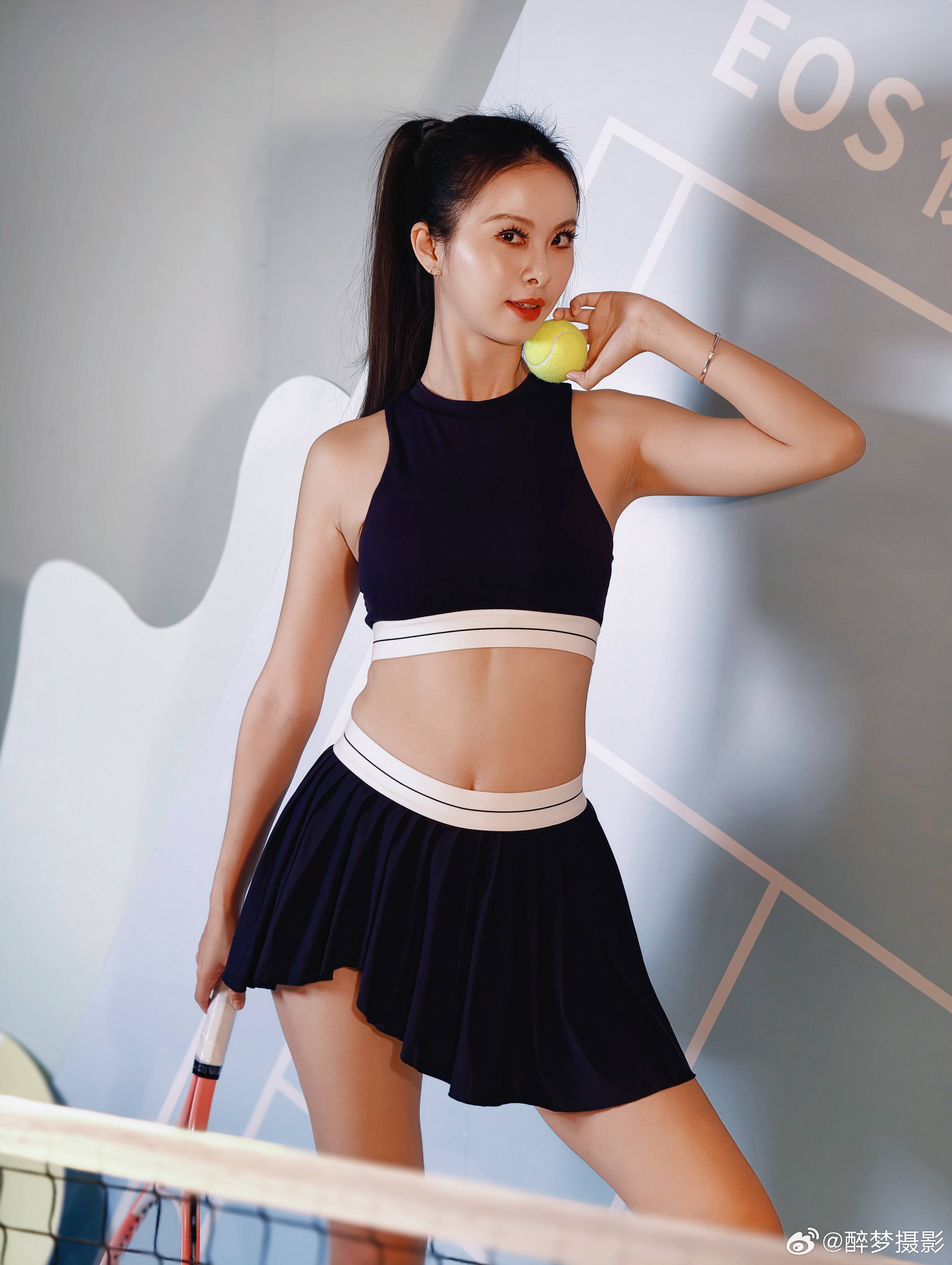 🎾网球少女的九宫格心动时刻!黑色运动套装+网球拍,优雅与力量并存~每