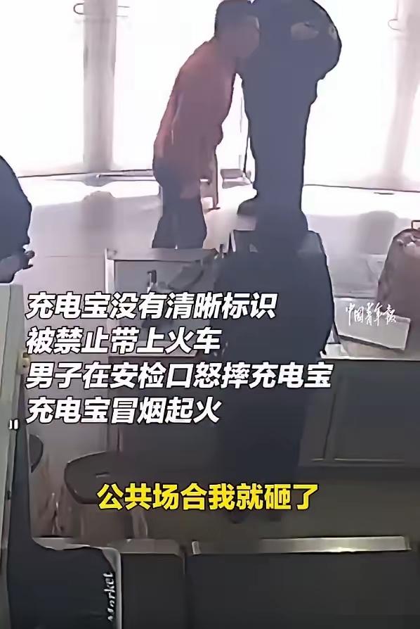 太糊涂!河南南阳一名男子带无标识的充电宝坐火车,因不符合规定被工作人员拦下,没想到他当场情绪失控,反复把充电宝往地上摔,结果直接导致充电宝起火燃烧,现场瞬间冒起明火,好在工作人员反应快,立刻上前处置,及时控制住了火势,没造成更大危险,也没人受伤。 铁路部门早就有明确规定,旅客带的充电宝必须标识清晰,单块额定能量不超100Wh,而且不能有破损、无安全隐患,才能带上火车,这名男子的充电宝本就不符合要求,还因一时冲动摔打引发火情,严重扰乱了车站的公共场所秩序。 最终警方依据相关法律规定,对该男子作出了行政处罚,他也为自己的冲动行为付出了代价。本来只是一件小事,遵守规定配合处理就好,偏偏因情绪失控闯了祸,不仅自己受处罚,还差点酿成安全事故,实在得不偿失。
