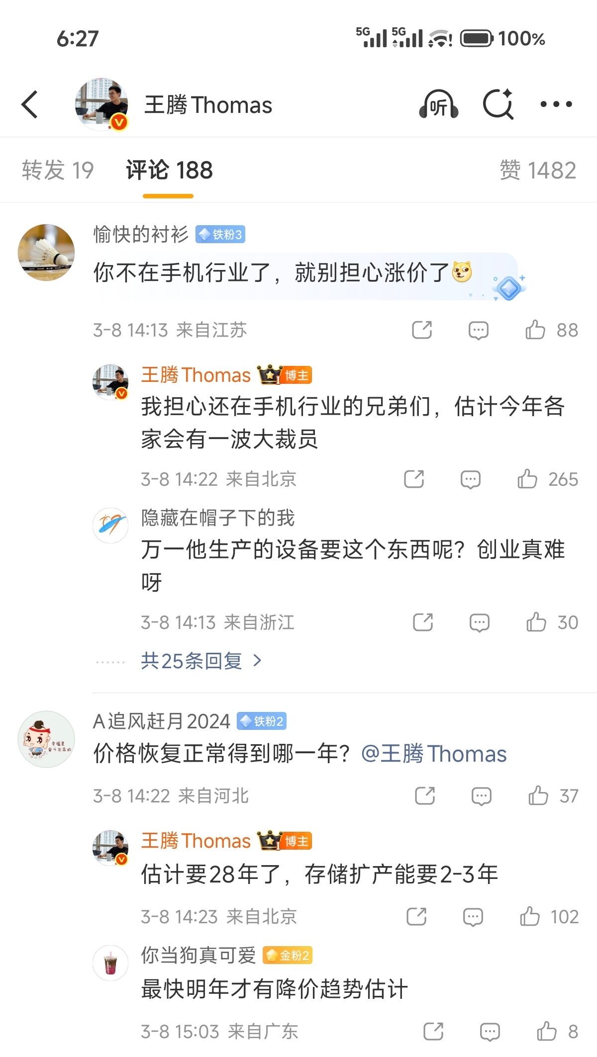 中国手机行业将迎来全面涨价涨幅在300-1000的样子,大储存最高涨2000,这