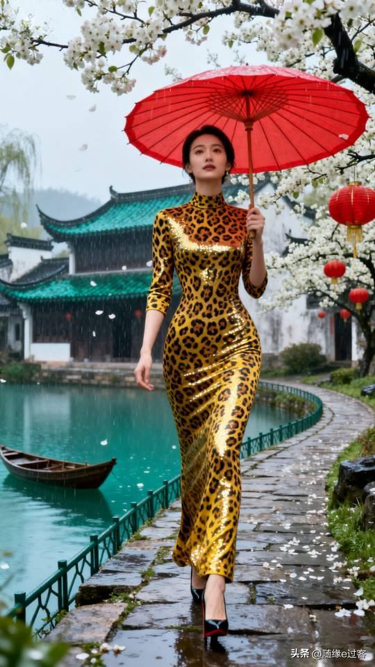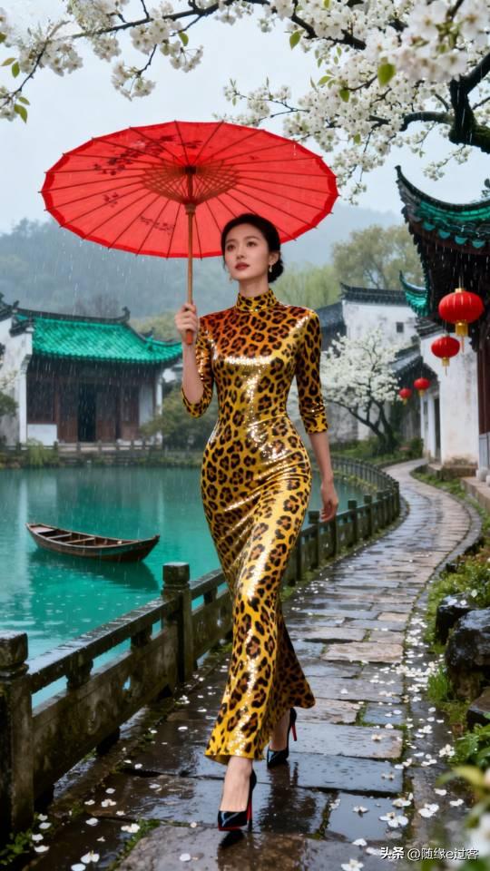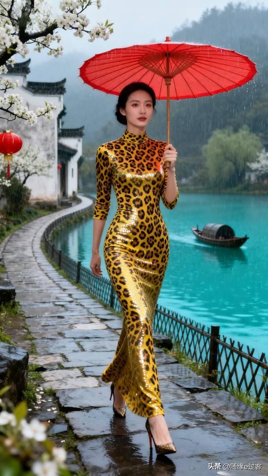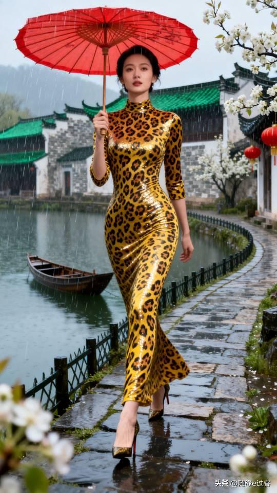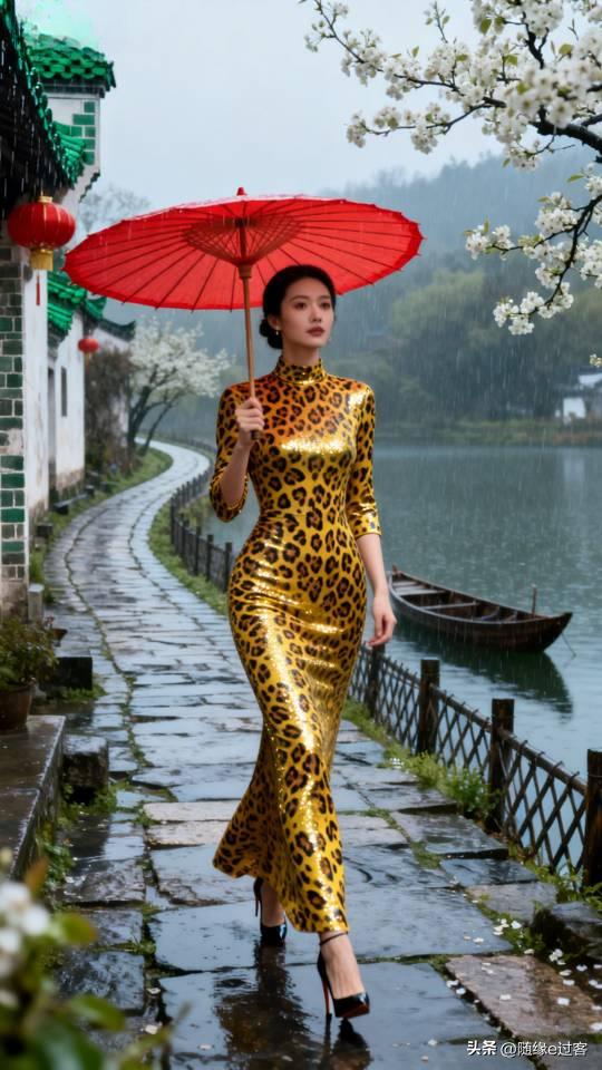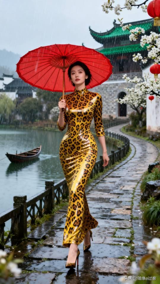 美女雨中漫步,感受江南水乡的诗意与浪漫。连衣长裙美女壁纸