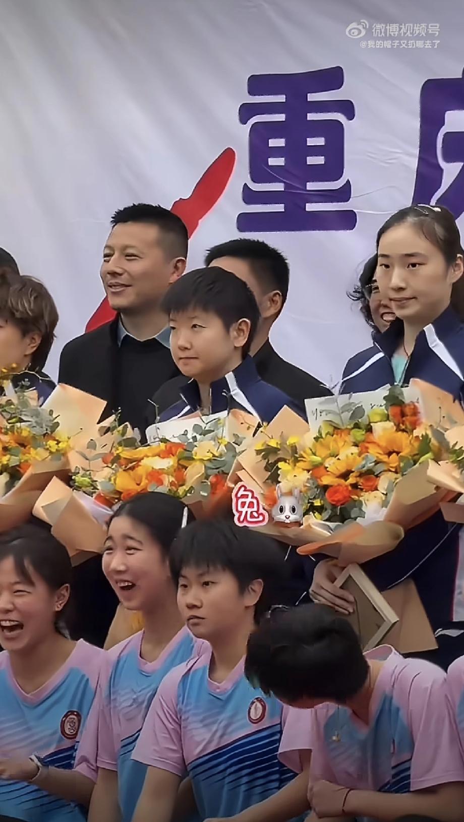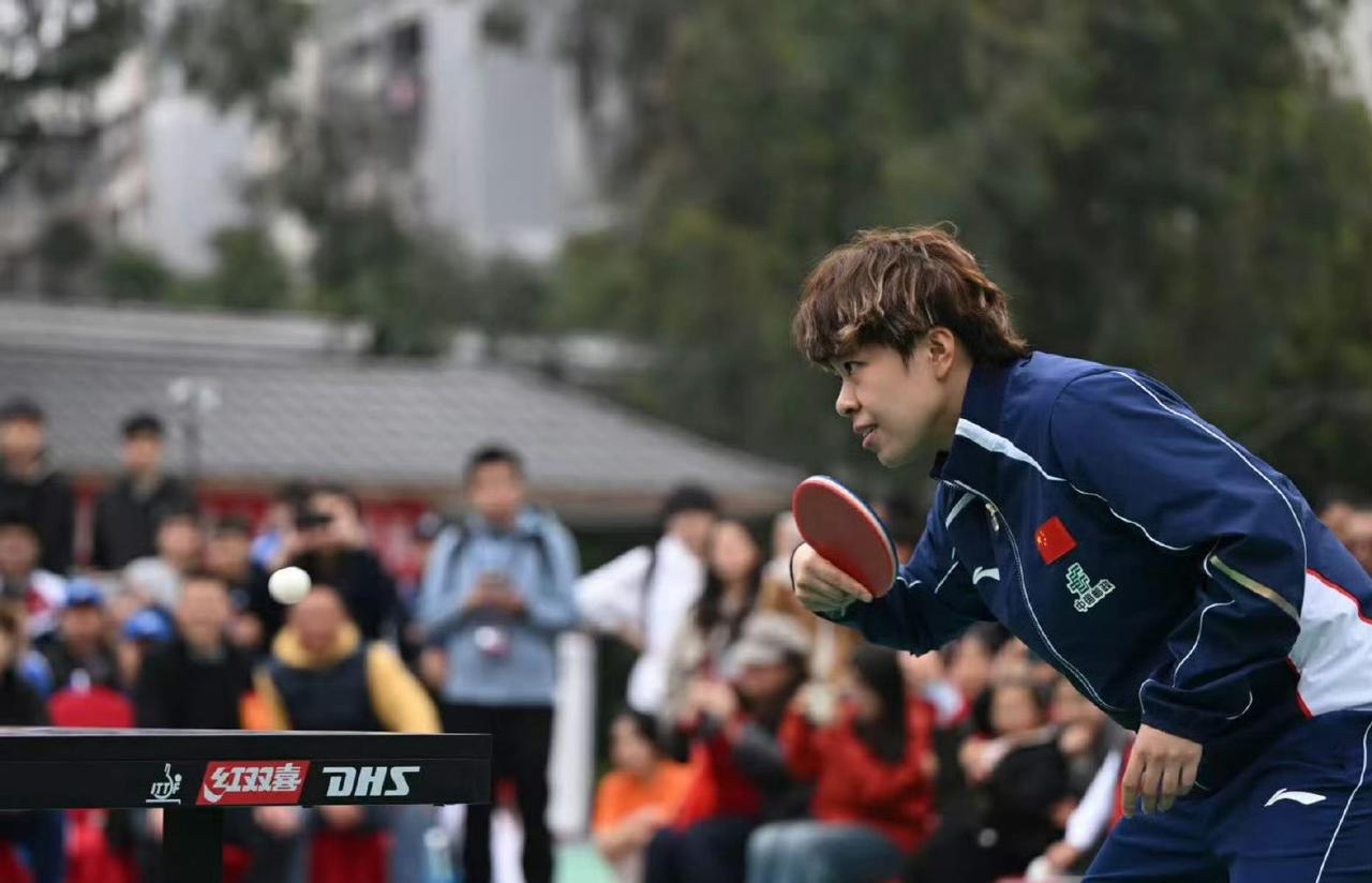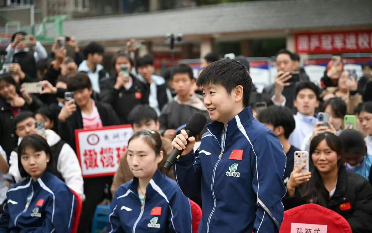 哦,在重庆参赛的选手们全体出动,都去参加国球进校园活动了[笑哭][赞], 莎莎、大迪、石洵瑶,还有王晓彤等到了重庆巴南区鱼洞中学,和孩子们一起打球,互换礼物。 曼昱、同同、蒯曼、陈熠和祝启慧等队员们到了鱼洞篮球馆,和巴南“村踢踢”夺冠球员们一起打乒乓球。 活动好热闹,当地的孩子们很开心,我们国乒孩子们更开心,你看图六照片上的莎莎多放松,多高兴[笑哭][赞]。