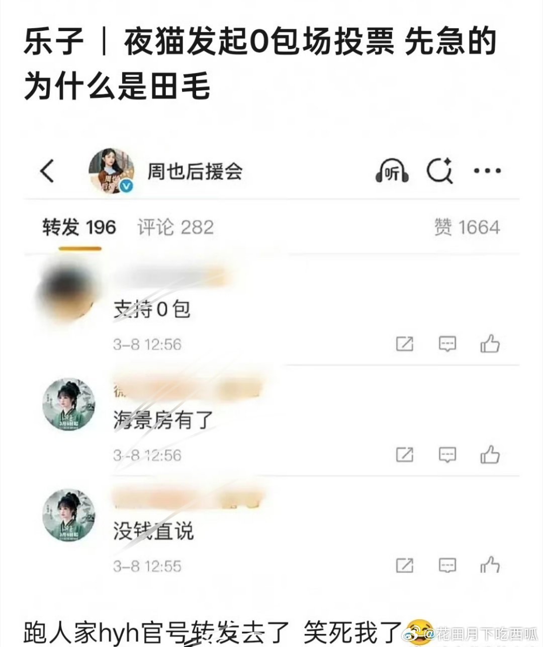 周也后援会不打算给新剧☁️包场,第一个急眼的为啥是田曦薇粉丝?跑到🥥家官浩底下喊话了周也后援会 0包场